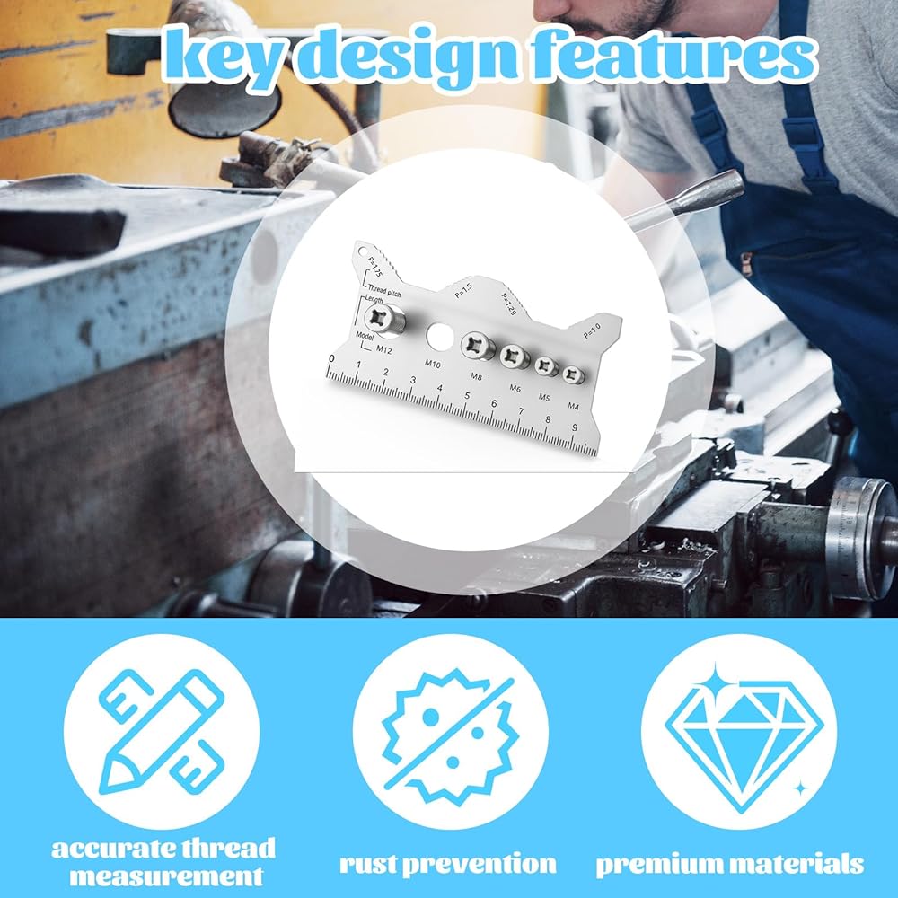 【High-Visibility Gauge Measuring Tool】Engineered with deeply engraved, high-contrast scales, this bolt size gauge ensures easy reading under any lighting condition. The stainless steel double-sided bolt gauge card maintains permanent legibility even after prolonged use, offering reliable metric thread gauge performance that exceeds typical tool for mechanics expectations in challenging work environments.