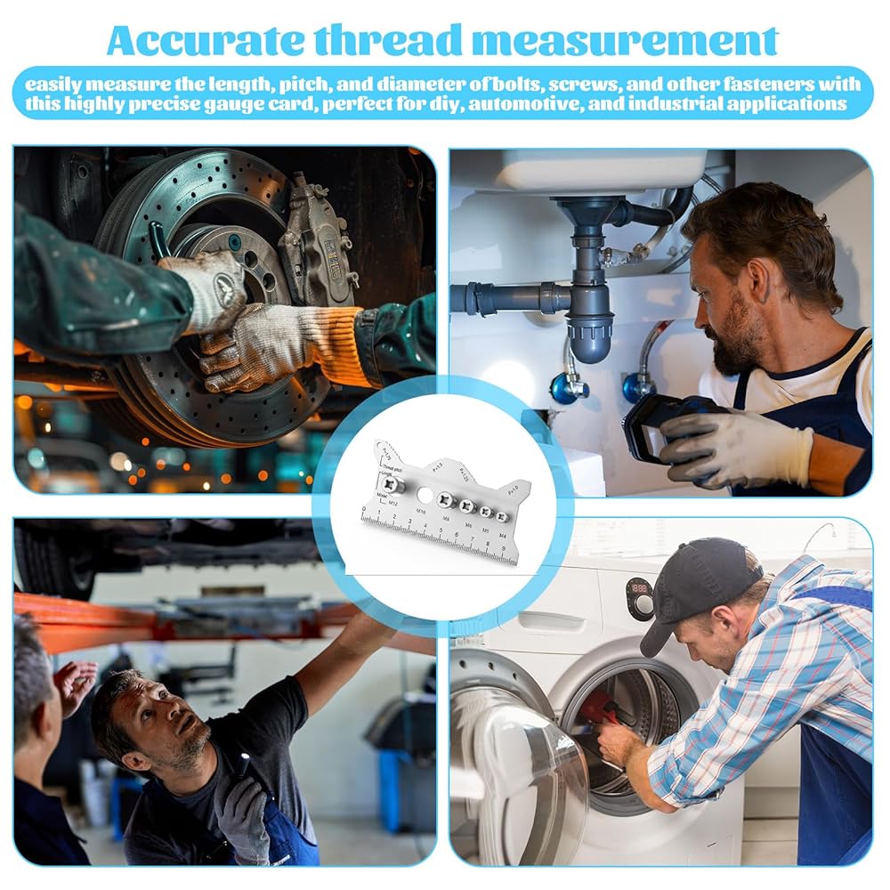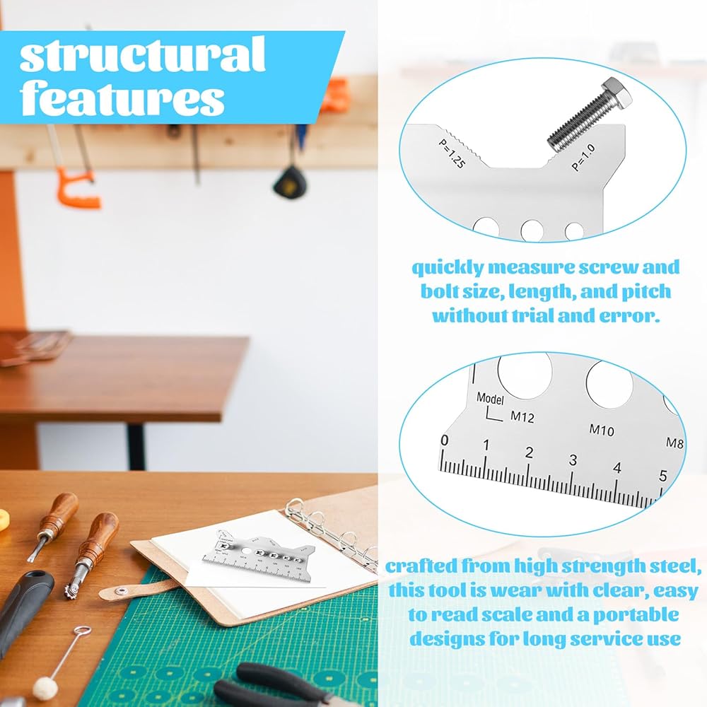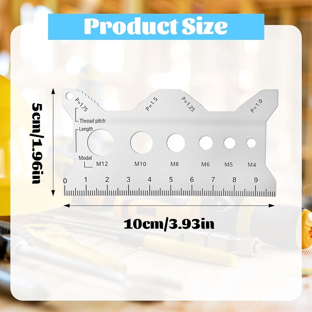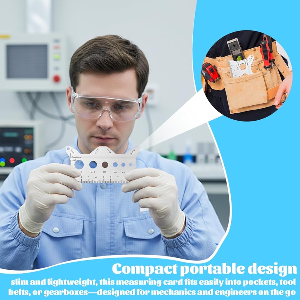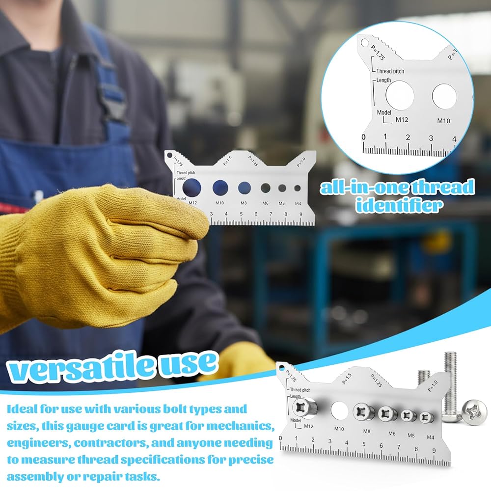 【Portable Professional Tool for Mechanics】Designed with compact dimensions (10x5cm/3.93x1.96in), this lightweight stainless steel double sided bolt gauge card fits perfectly in toolboxes, pockets, or tool belts. The versatile thread checker serves as ideal mecanic tools companion for on-site repairs, DIY projects, and professional workshops, providing instant access to accurate metric bolt measurement capabilities anywhere.