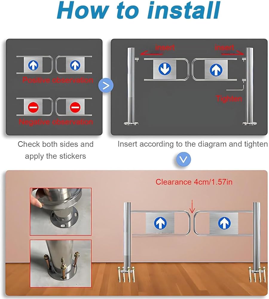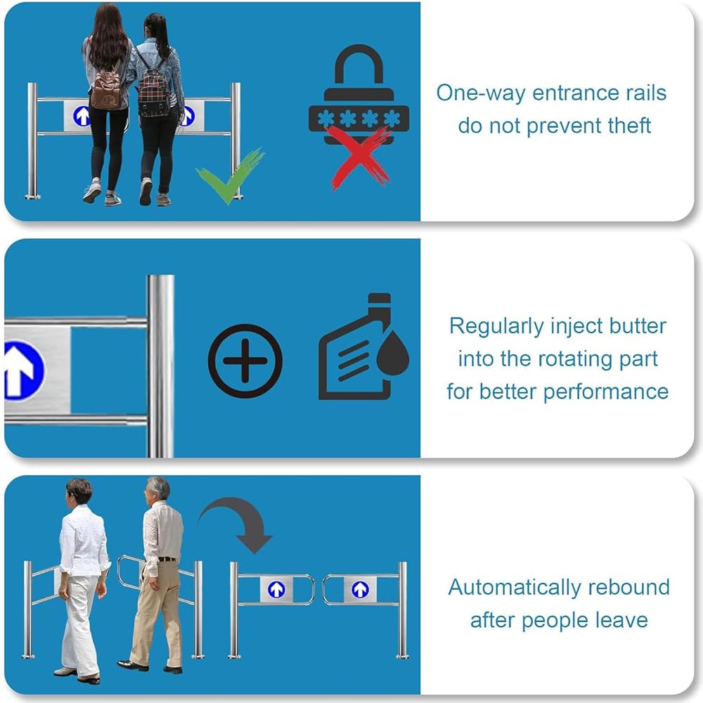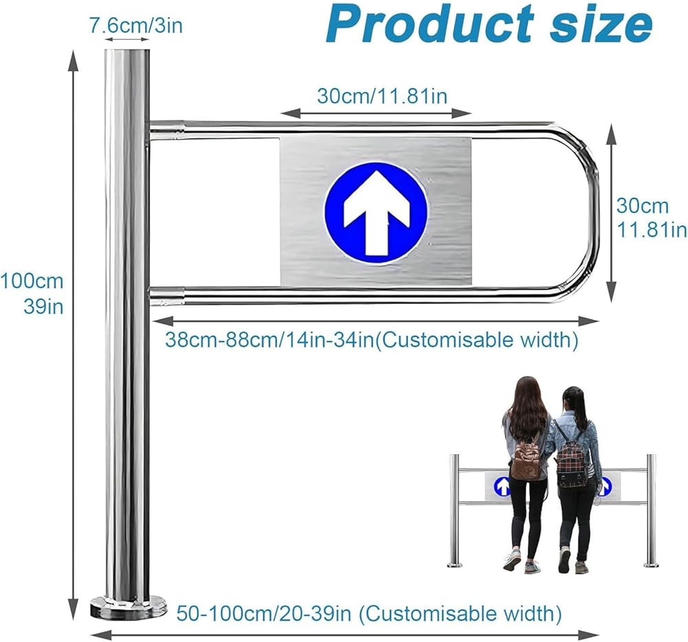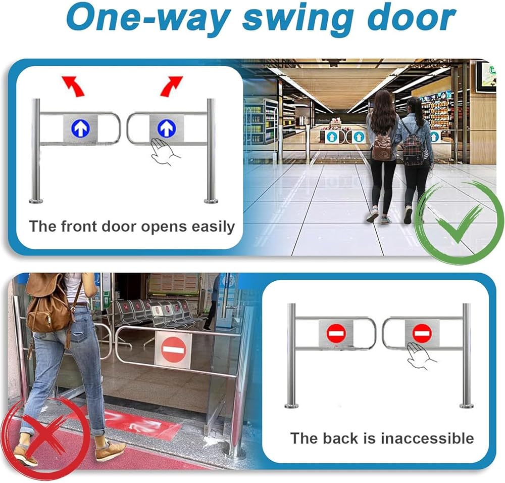 Automatic Rebound Swing Gate Wide Stainless Steel One-way Door for Store Access Manual Hand Push Entrance Gate,This swing entrance door, also referred to as a warehouse pedestrian door or industrial swing door, is the perfect solution for high-traffic areas such as supermarkets, libraries, and decorative goods stores. Designed with a one-way entry feature, it effectively manages foot traffic, making it an excellent choice for control zones. Crafted from durable stainless steel, this metal swing door provides exceptional impact resistance, ensuring longevity even in bustling environments like warehouses and shopping malls. Its innovative design includes a built-in high-elasticity spring that allows for smooth, automatic closing with just a gentle push—no electricity required. Safety is a priority with this swing door, featuring a bottom expansion screw fixation and an anti-dumping design that enhances stability and load-bearing capacity. The customizable width allows it to fit various channel needs, making it ideal for everything from supermarket entrances to logistics channels. Specifications include a product name of Swing Door, stainless steel material, a sleek silver finish, a height of 100 cm, and customizable lengths ranging from 50 to 100 cm. Installation is straightforward with drill mounting, and it's suitable for a range of settings, including warehouses, construction sites, garages, and parking lots. Included in the package are one one-way swing door and all necessary mounting accessories, ensuring a hassle-free installation process. Elevate your space with this practical and efficient swing door, designed to enhance both functionality and safety in your high-traffic areas.