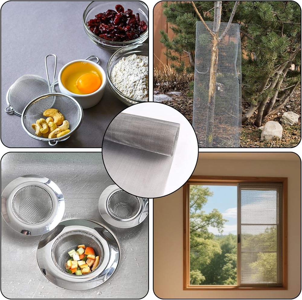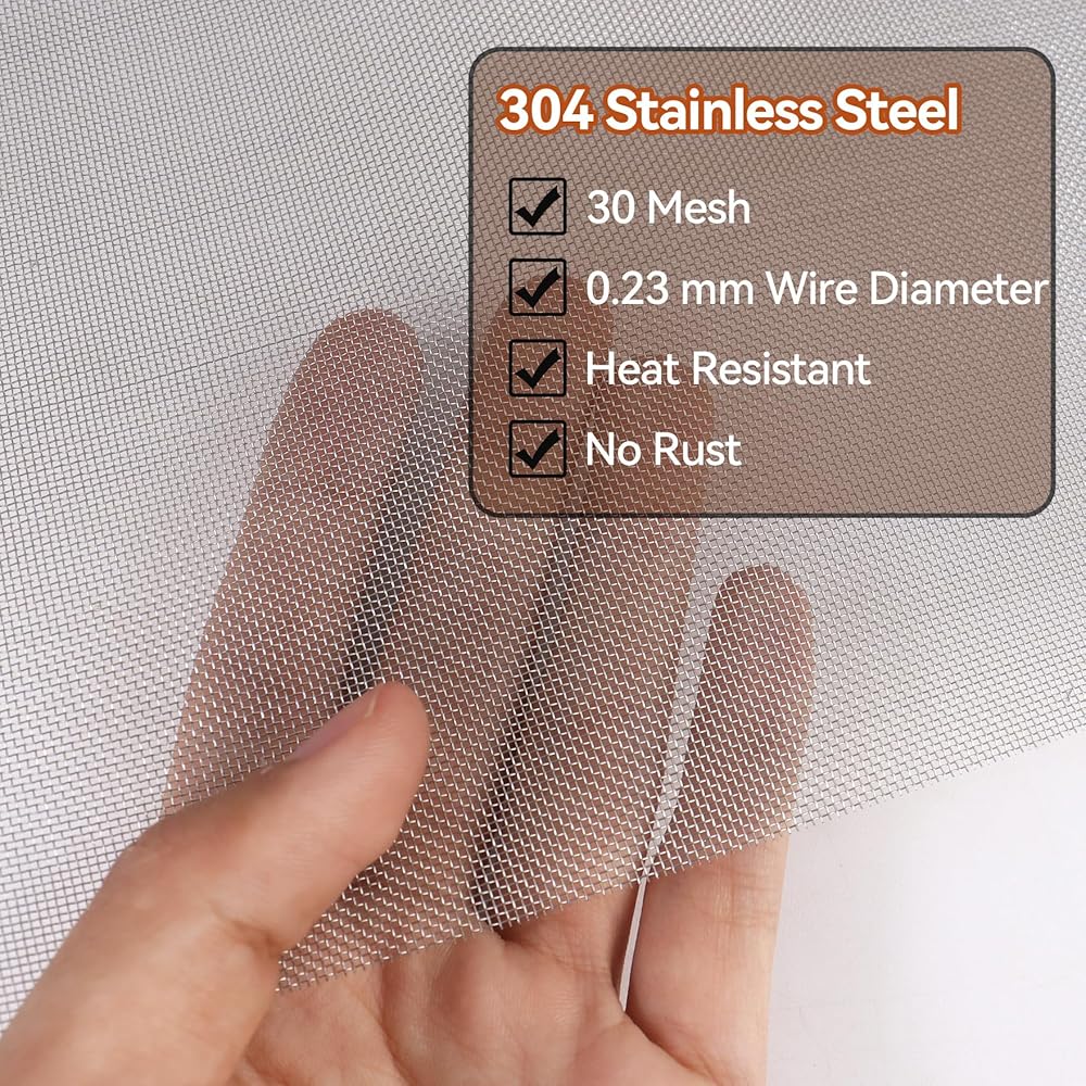 • Package Includes: You will get 2 packs of 304 stainless steel woven wire mesh, size 11.8"x47.2"(30x120cm), 30 mesh, long enough for your needs