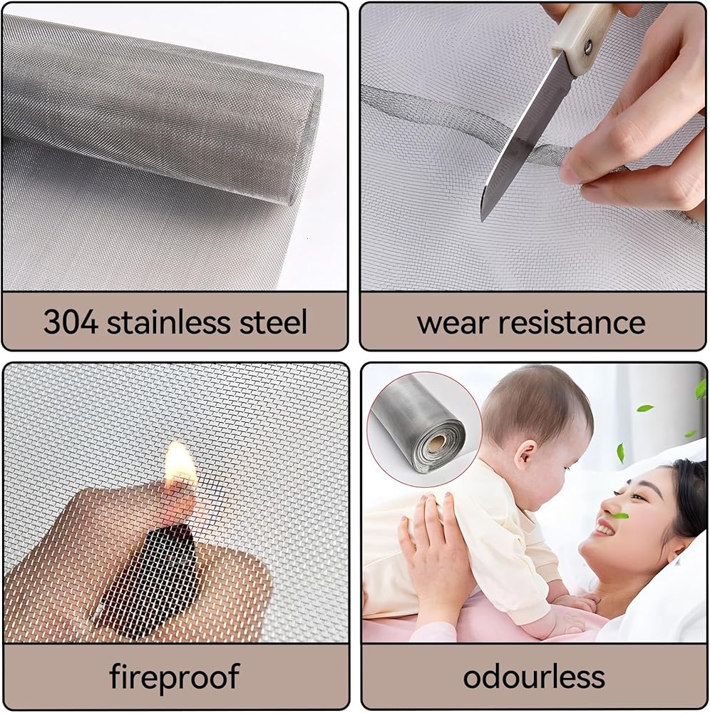 • 304 Stainless Steel Material: The stainless steel mesh screen is made of 304 stainless steel, hard and strong, high temperature resistance of 800°C, anti-rust and wear-resistant, long service life, can be easily cut with tin snips