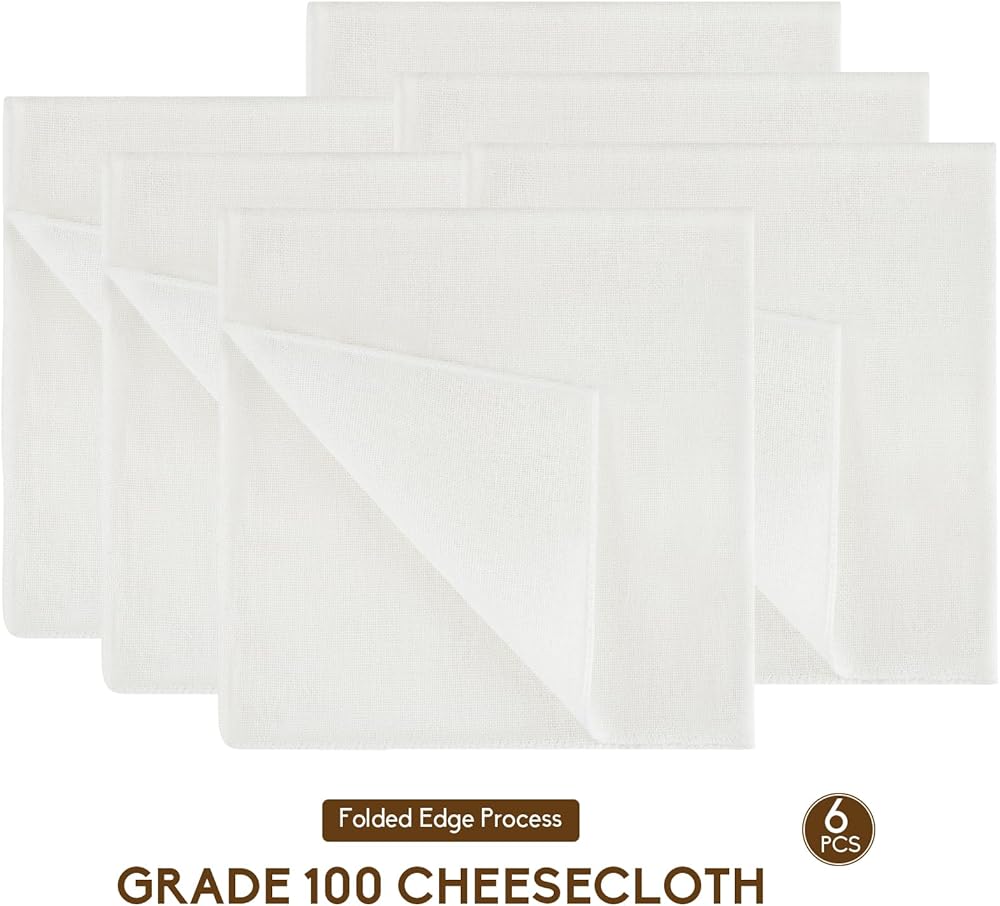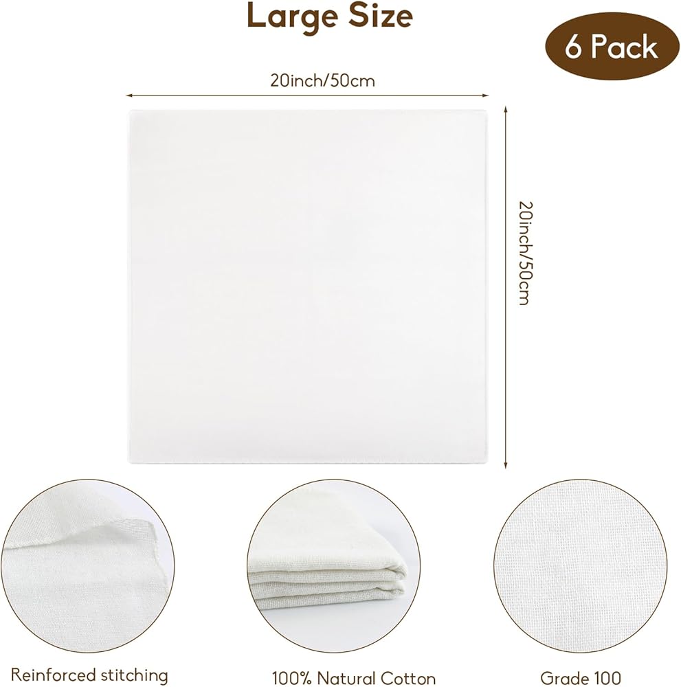 6 قطع من قماش الجبن من الدرجة 100 للتصفية، قماش موسلين قطني قابل لإعادة الاستخدام مقاس 20 × 20 بوصة، حواف مُطوقة، مرشح درجة الطعام للطهي، حليب الجوز، الزبادي اليوناني والديك الرومي
