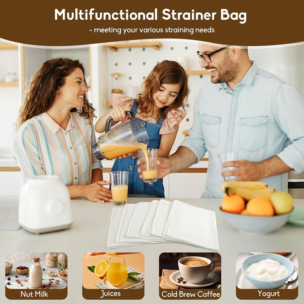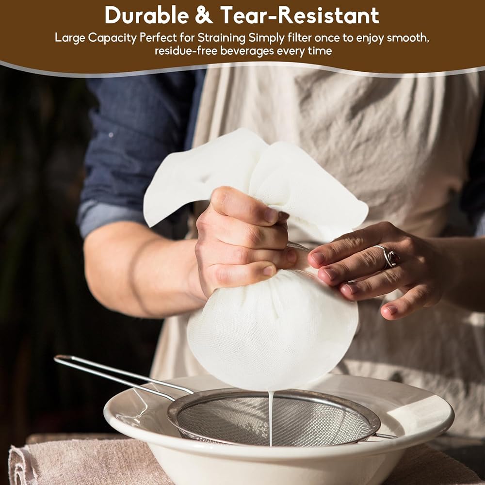 ترشيح فائق الدقة 100 - مصمم بأعلى كثافة من النسيج 100 (46 × 54 خيط في البوصة). يلتقط هذا القماش القطني حتى أصغر الشوائب، مما يضمن أن الزبادي اليوناني وحليب الجوز وعصائر الفاكهة ناعمة كالحرير دون أي بقايا غير مرغوب فيها.