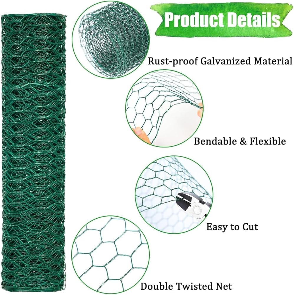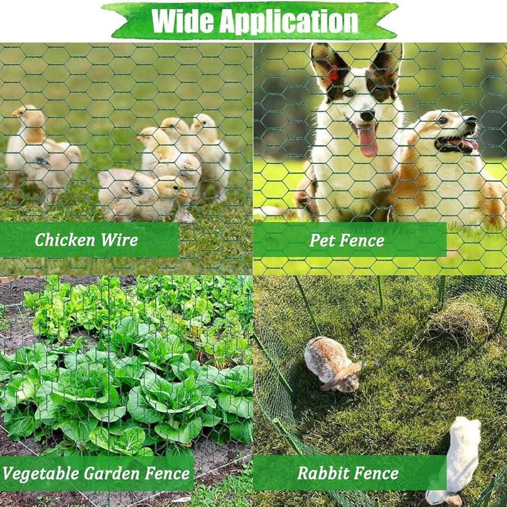 Versatile PVC Coated Chicken Wire for Multiple Uses:This heavy-duty chicken wire mesh roll is your all-in-one solution for poultry fencing, pet enclosures (like rabbit runs), garden crop protection, and creative DIY crafts. Its durable construction makes it ideal for both functional garden projects and delicate florist work, providing excellent value and flexibility for various needs.