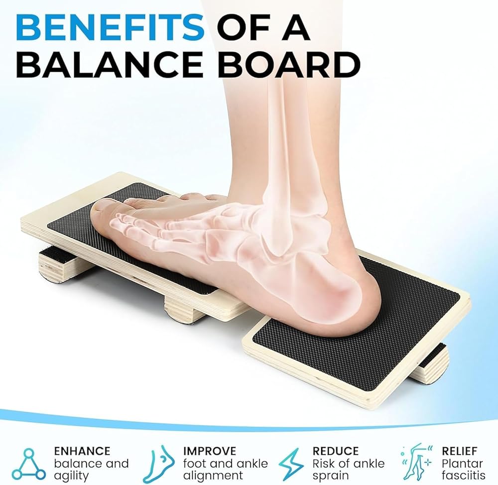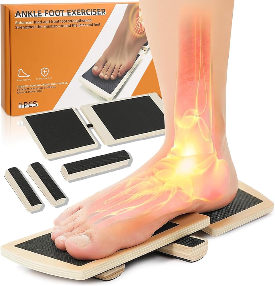 Go beyond traditional fitness tools with our advanced Foot & Ankle Trainer. Designed with two movable panels and an adjustable balance bar, this trainer allows you to fully customize intensity levels for activities ranging from rehabilitation to athletic performance training. Whether you're recovering from an injury or elevating your workout routine, this versatile tool helps you achieve your goals safely and effectively. A detailed workout guide is included to ensure proper form and maximize results. Target and relieve foot pain through specialized stretching and strengthening movements. This trainer activates core and plantar muscles to help reduce discomfort associated with Plantar Fasciitis, Achilles Tendonitis, and ankle sprains. With consistent use, you can improve gait mechanics and reduce the likelihood of pain recurrence. Built with premium birch plywood and finished with a non-slip, wear-resistant texture, this balance board offers reliable stability and long-lasting use. Its lightweight and portable design comes with a convenient storage bag, making it ideal for use at home, in the office, or while traveling. Trusted by athletes and physical therapists alike, this tool is recommended for ankle strengthening, injury prevention, and rehabilitation support for knees and ankles. It's an essential tool for building stability, mobility, and functional strength. Ideal for users of all ages, this trainer supports a wide range of fitness goals—from senior balance exercises to daily workouts for adults and teens. It's a fun, practical way to promote active living and embrace wellness as a family.