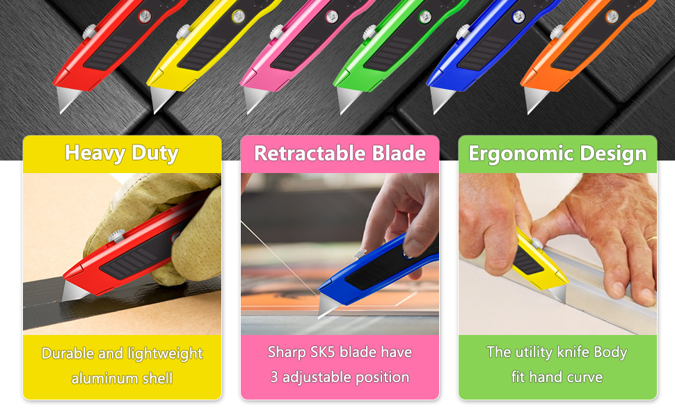 💗【قطعتان قابلتان للسحب】 سكينة متعددة الاستخدامات قابلة للسحب بشفرة ثلاثية المراحل، مناسبة لقطع المواد ذات السُمك المختلفة، مثالية للاستخدام في مشاهد مختلفة.