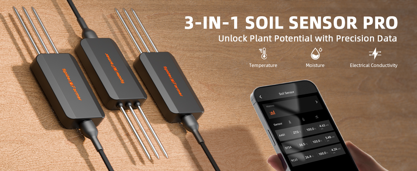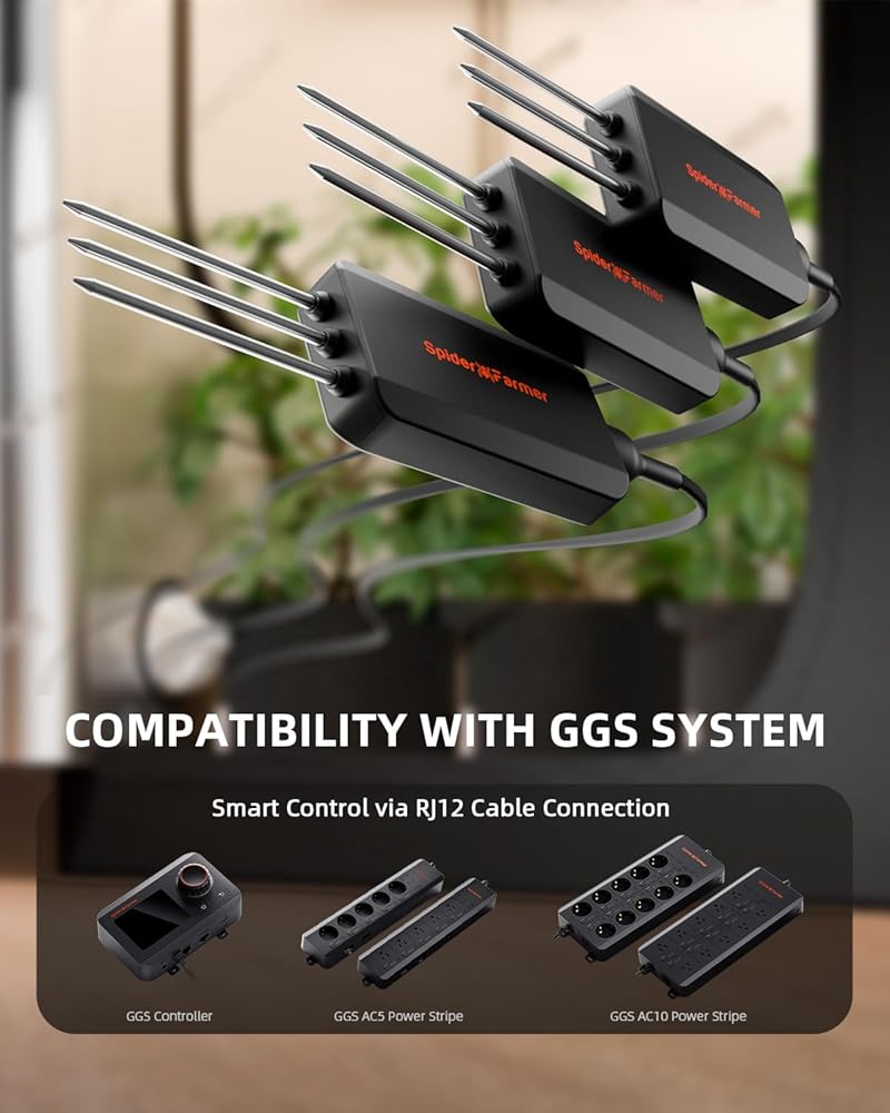 Spider Farmer GGS 3 في 1 مستشعر التربة برو 3 قطع، جهاز قياس درجة حرارة الرطوبة EC مع دعم RJ12 للتحكم الذكي في التطبيقات لغرفة خيمة النمو الداخلية للحديقة