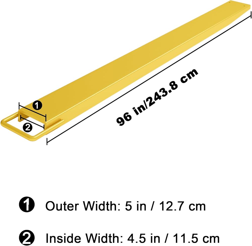 Universal Compatibility with Standard Forklifts: Designed to fit standard 4.3-4.5 inch width pallet forks, these forklift extensions are universally compatible with major brands including Toyota, Hyster-Yale, Crown, and Raymond, eliminating the need for brand-specific fittings.