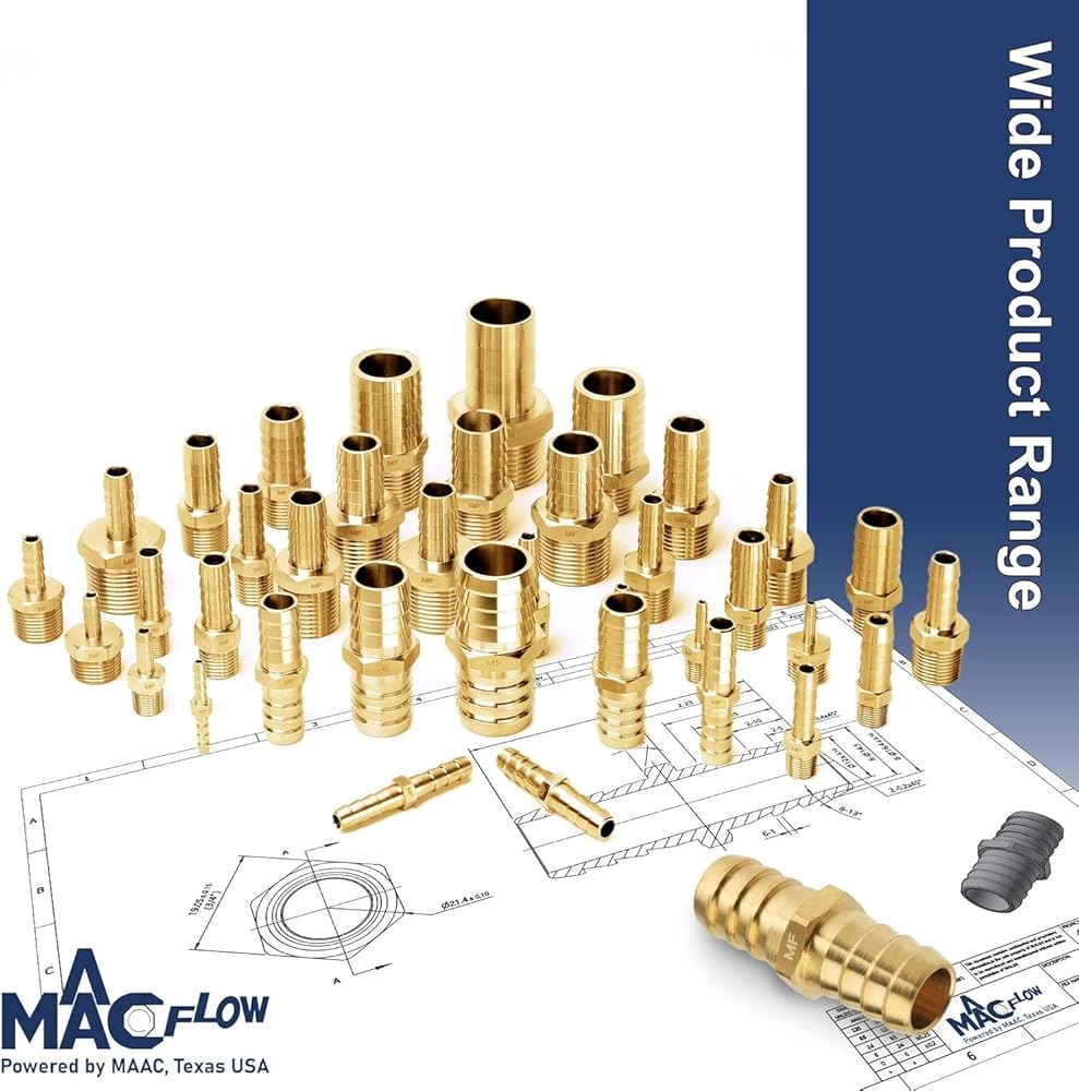 MAACFLOW النحاس 1/2 "إلى 3/8" خرطوم المخفض معرف الشائكة المناسب (حزمة من 2)