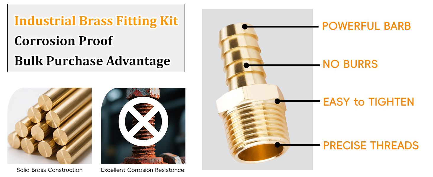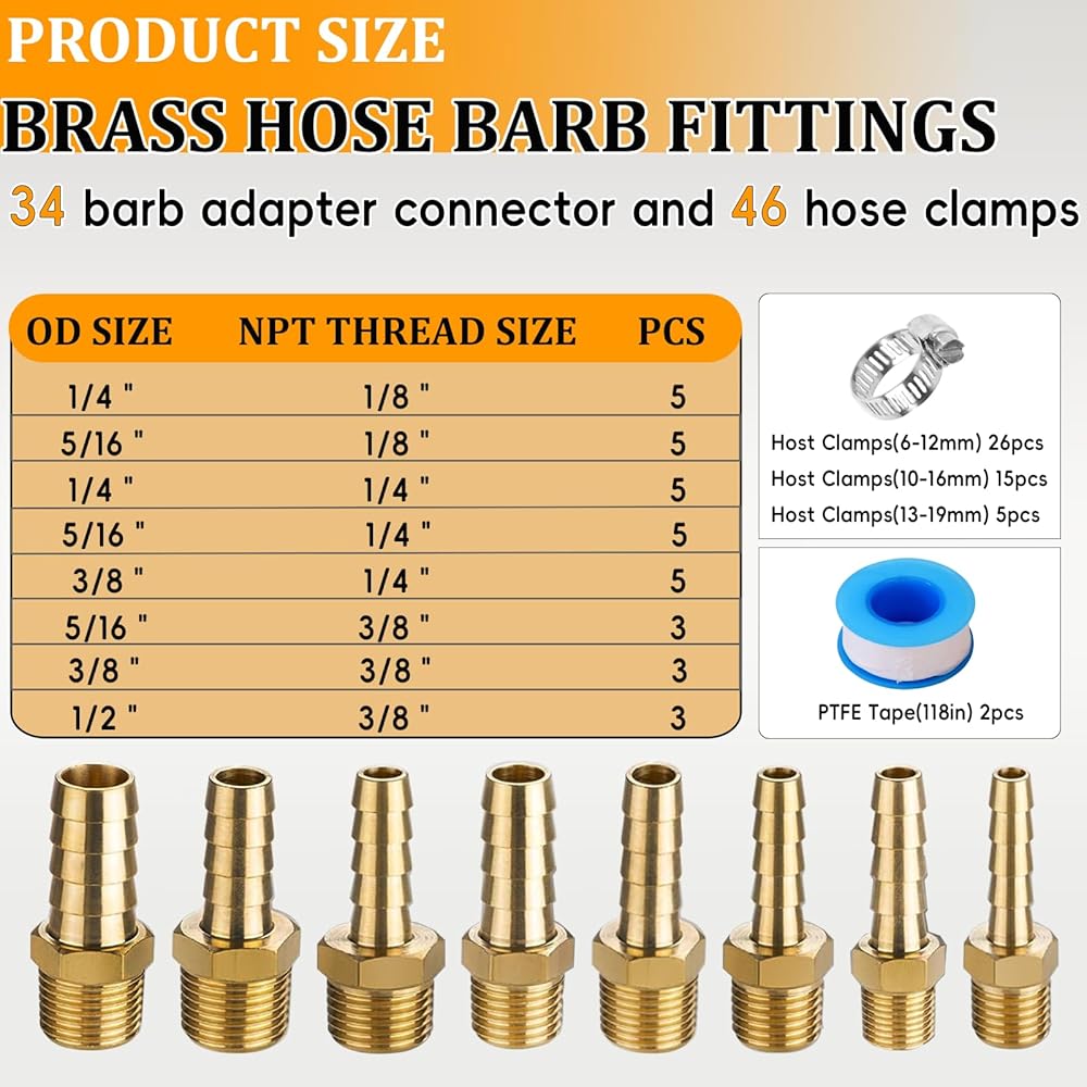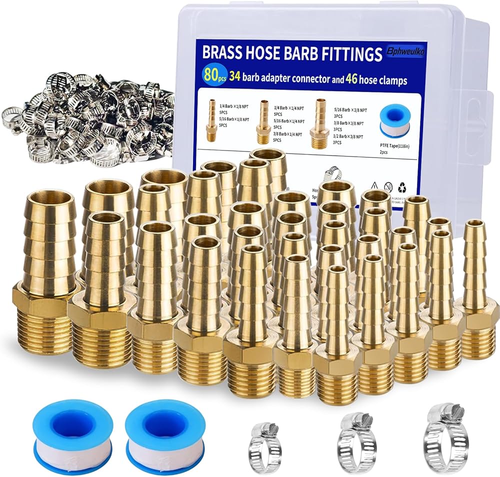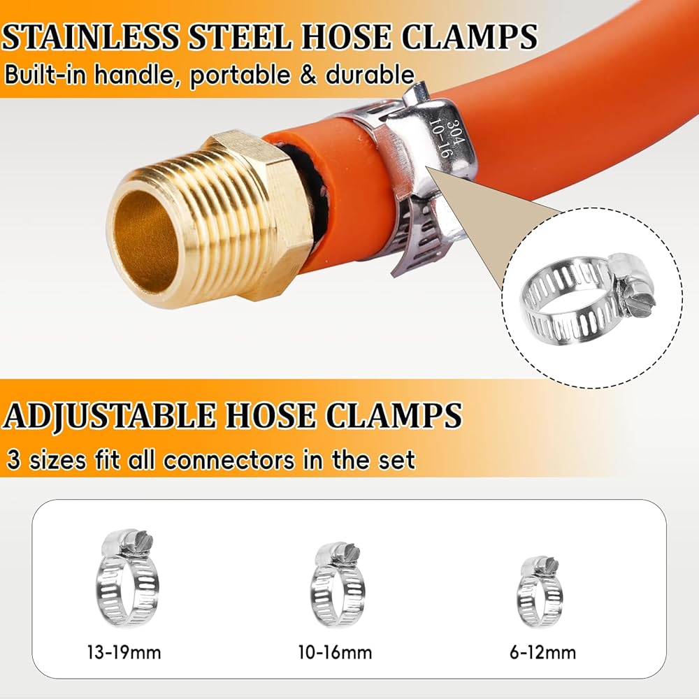 هيكل من مواد فاخرة: يتم تصنيع تركيبات الخراطيم الشائكة من النحاس الصلب لمقاومة التآكل يمكن الاعتماد عليها، في حين أن مشابك الخرطوم مصنوعة من الفولاذ المقاوم للصدأ من أجل تثبيت متين. يضمن شريط التيفلون المتضمن إغلاقًا موثوقًا لوصلات الهواء والماء والوقود تحت الضغط.