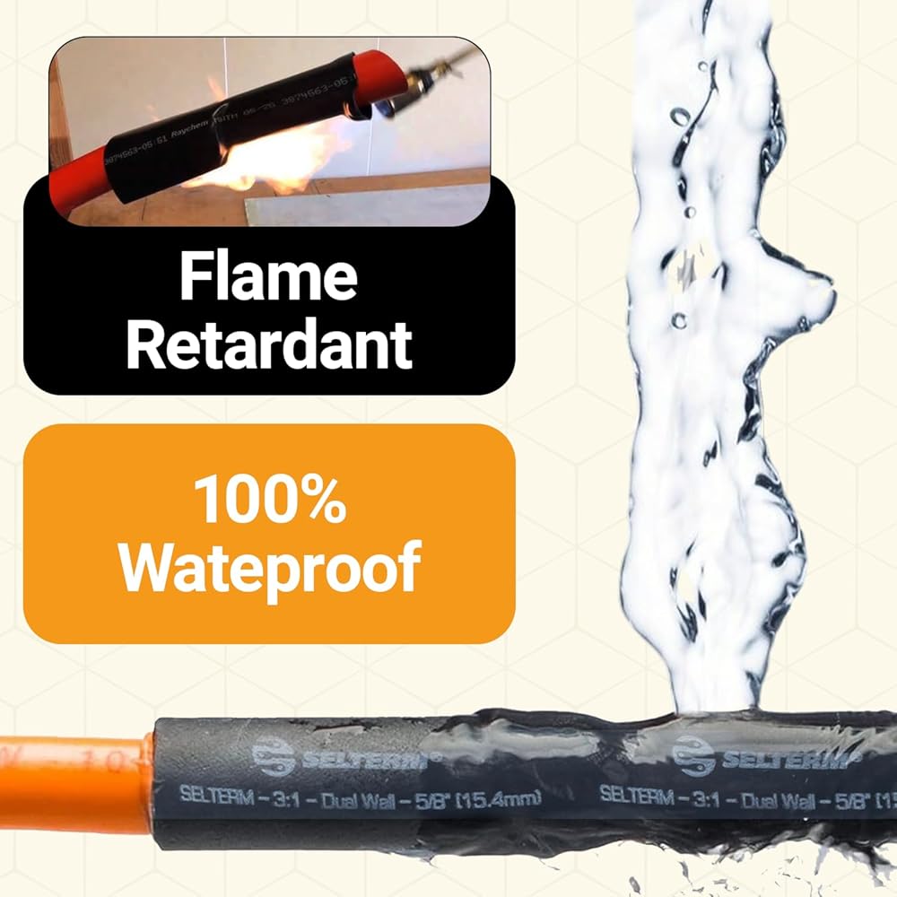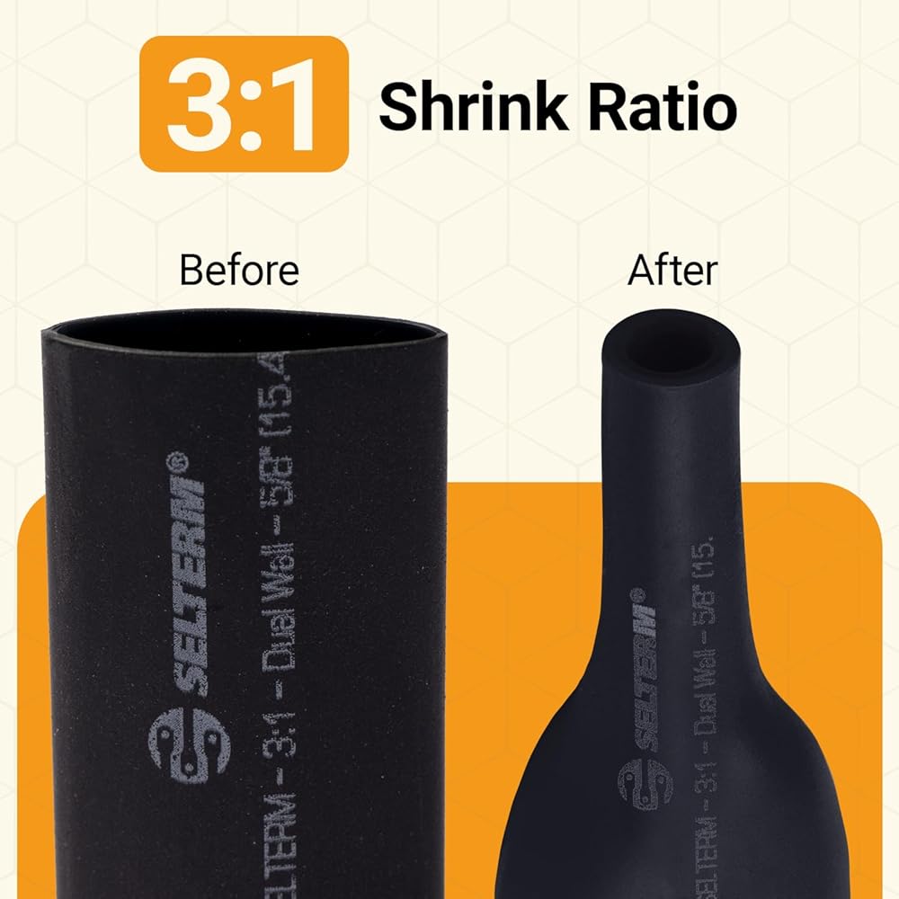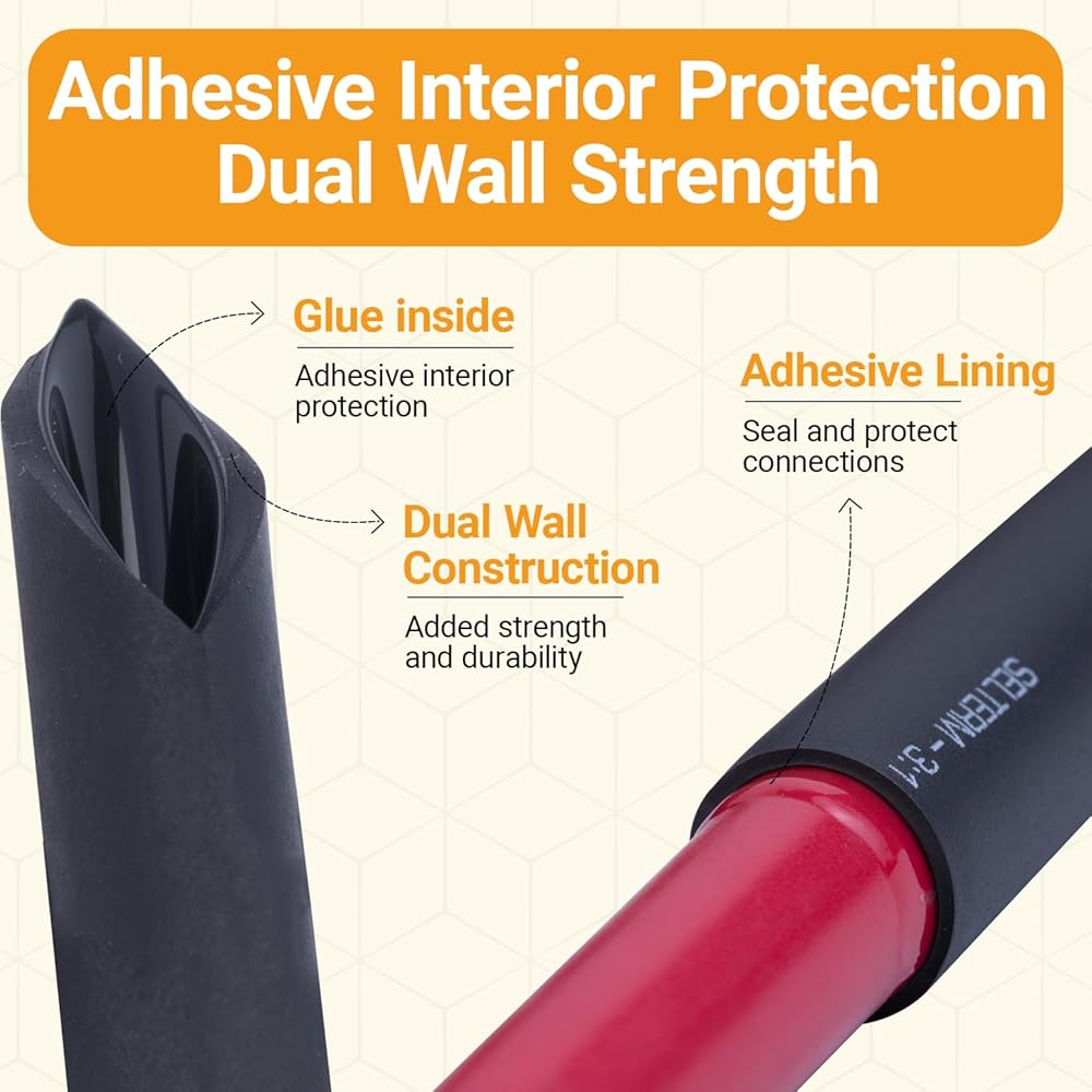 • نسبة الانكماش الحراري 3:1: سينكمش أنبوب الانكماش الحراري مزدوج الجدار إلى 1/3 من حجمه الأصلي بعد تطبيق الحرارة. إنه مثالي للاستخدام على نهايات الأسلاك أو المناطق التي يتعرض فيها عزل الكابلات. عند تطبيق الحرارة، يذوب اللاصق داخل أنبوب التغليف المنكمش، مما يوفر إغلاقًا محكمًا مع حماية مقاومة للماء وقوة شد رائعة مع عزل طويل الأمد.