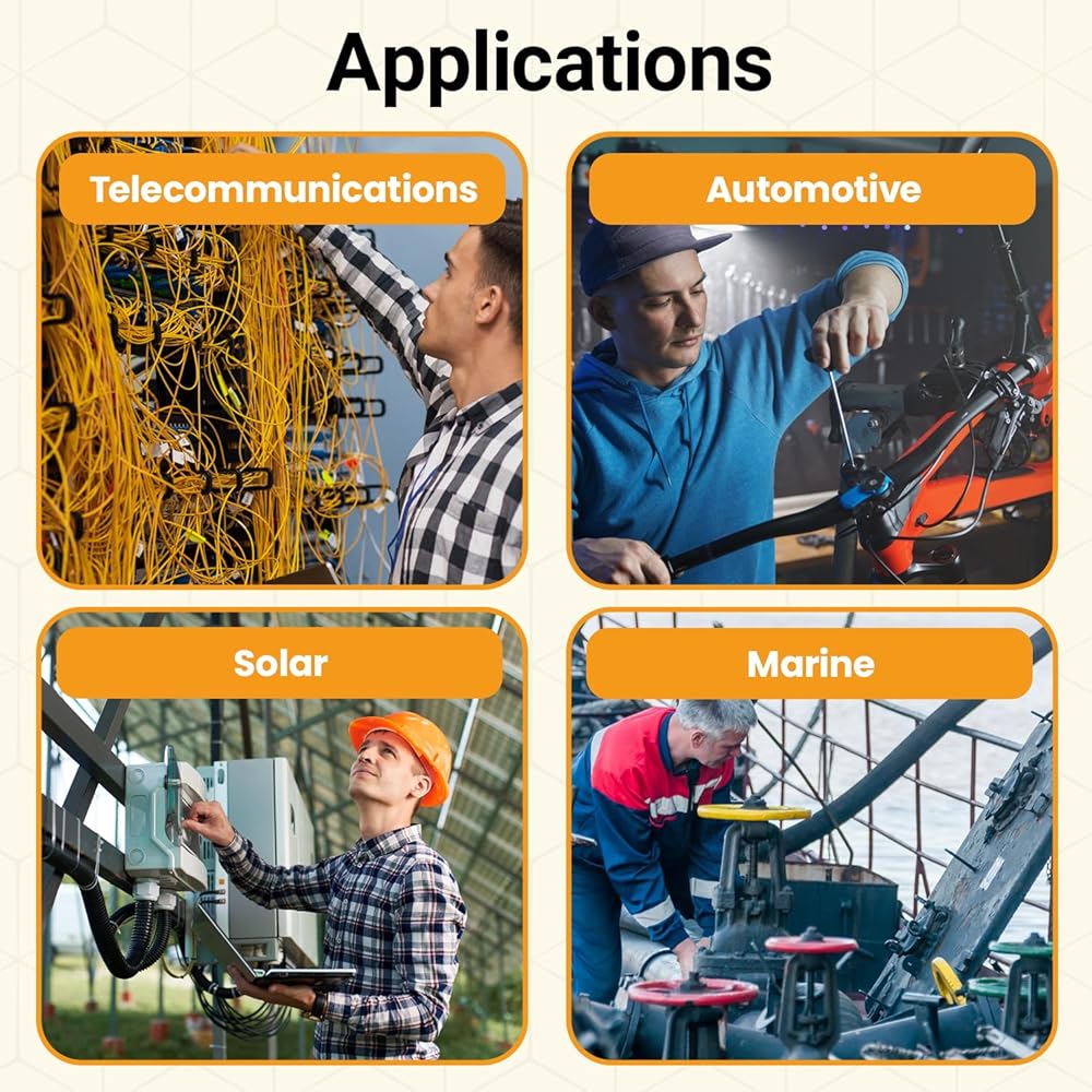 • مقاسات متعددة لتطبيق متعدد الاستخدامات: تُستخدم الأحجام الكبيرة المشهورة من أنابيب الانكماش الحراري عالية الجودة مع مادة لاصقة بشكل رئيسي في الإصلاح الصناعي، والبحرية، والسيارات، ووصلات الأسلاك، ونهايات الأسلاك، والعزل الكهربائي، وتجميع الأسلاك، والحماية الميكانيكية، وحماية ضد الصدأ والتآكل لمفاصل اللحام، وصوت السيارة والكهرباء.