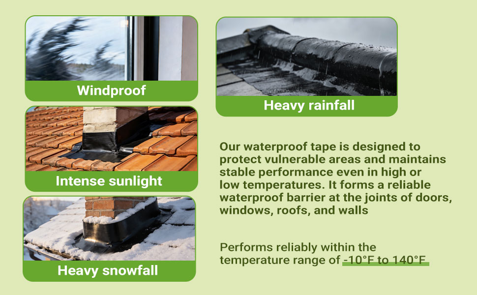 حماية من الأشعة فوق البنفسجية وجميع الأحوال الجوية: تم تصميم هذا الشريط الوامض المقاوم للماء للاستخدام في الهواء الطلق ويقاوم الأشعة فوق البنفسجية ودرجات الحرارة العالية والرطوبة والرياح والمطر. يمنع السطح المتين لشريط النافذة الوامض التشقق أو الشيخوخة، مما يضمن بقاء الشريط مثبتًا بشكل آمن خلال تغيرات الطقس الموسمية.