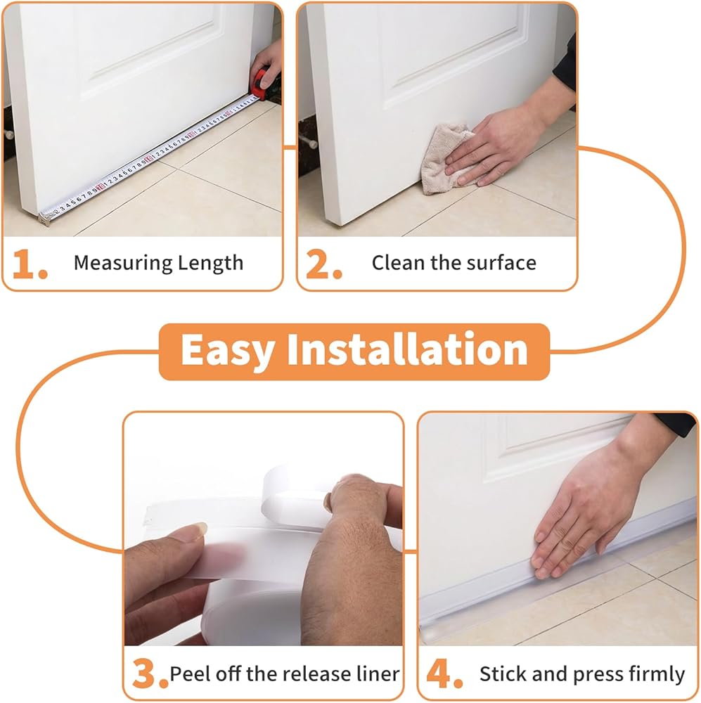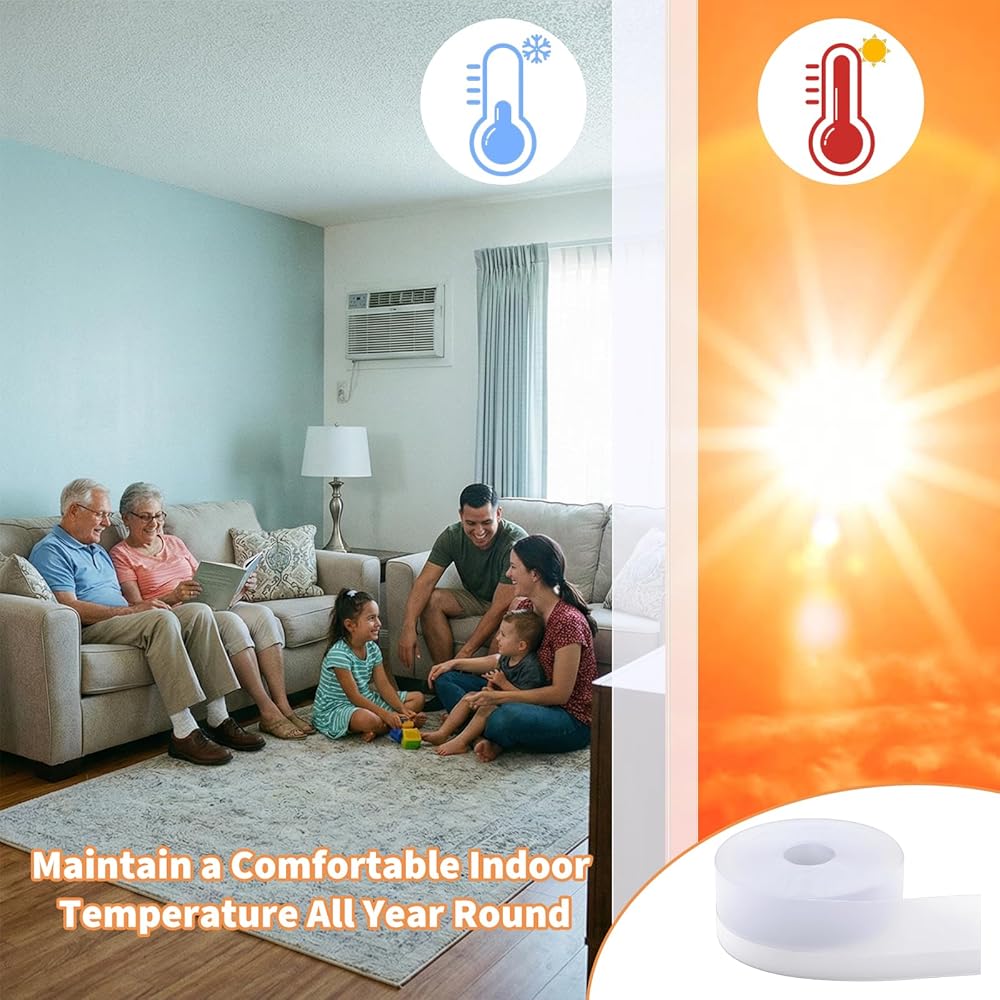 Weather stripping door seal strip with strong adhesive, durable silicone, versatile for doors, windows, and shower glass, blocks drafts, wind, water, and noise while improving energy efficiency.
