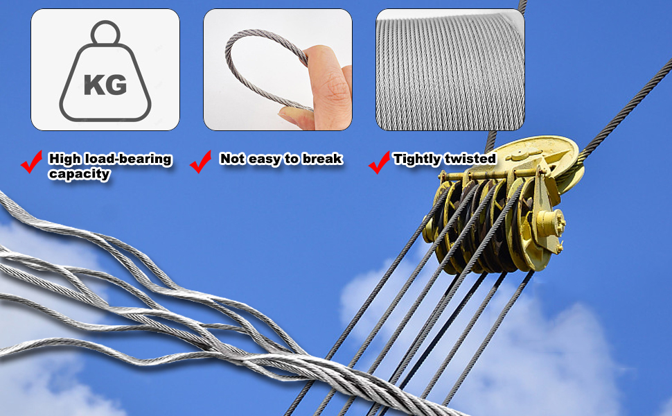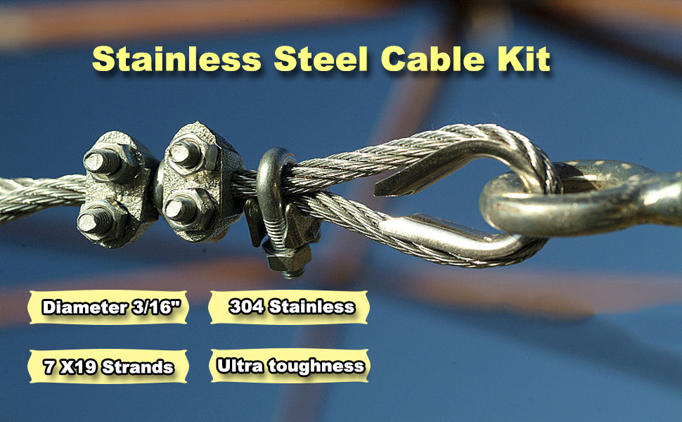 【طول قابل للتعديل】 يتم ضغط الواجهات الحلقية مسبقًا على الحبل السلكي. استخدمه مباشرة إذا كان الطول مناسبًا، أو قم بقطع الكابل المصنوع من الفولاذ المقاوم للصدأ مقاس 3/16 حسب الحجم وإنشاء تركيبات جديدة باستخدام الملحقات المضمنة.