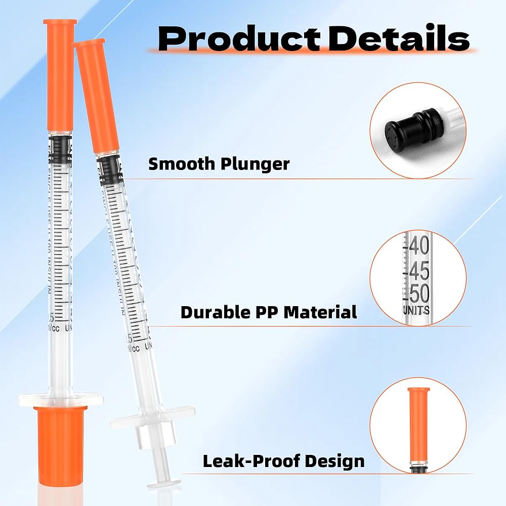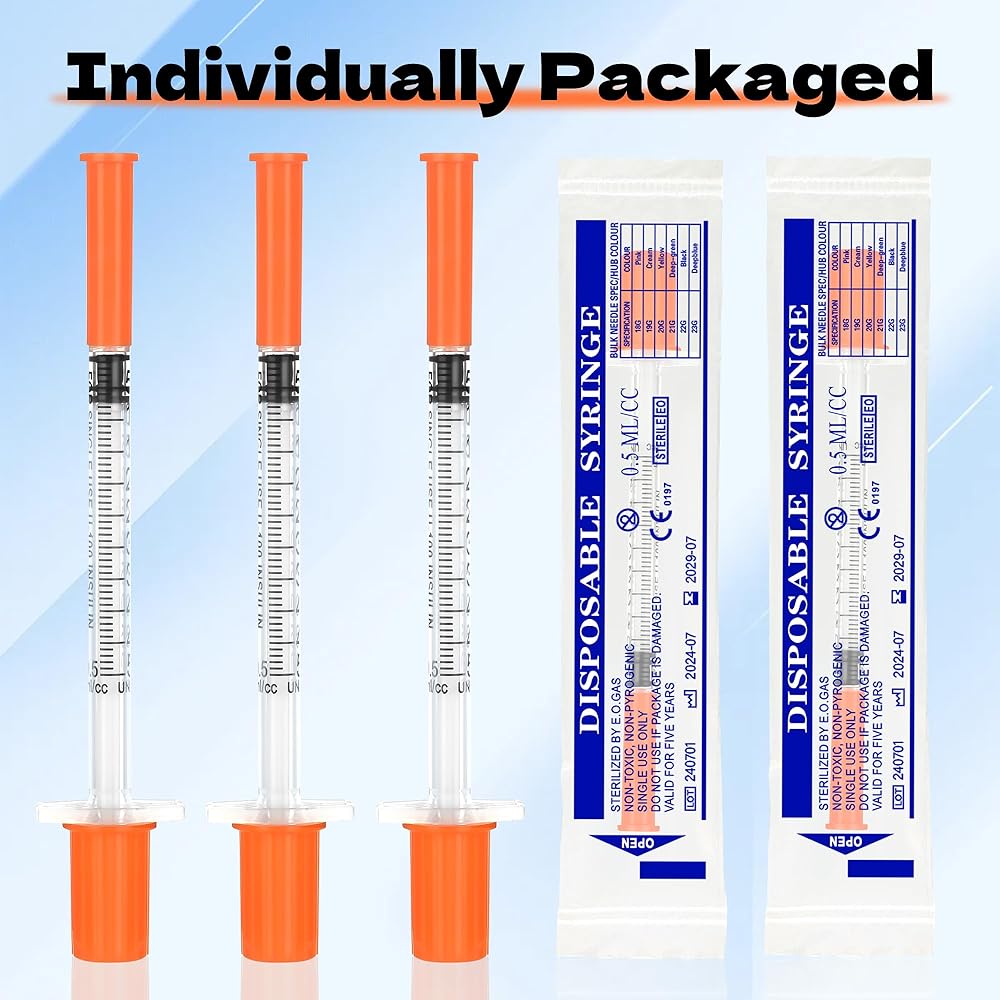 Individually Packaged: 50 Pack 0.5 cc syringes with needle size 31G 1/4" (6mm) each individually sealed.