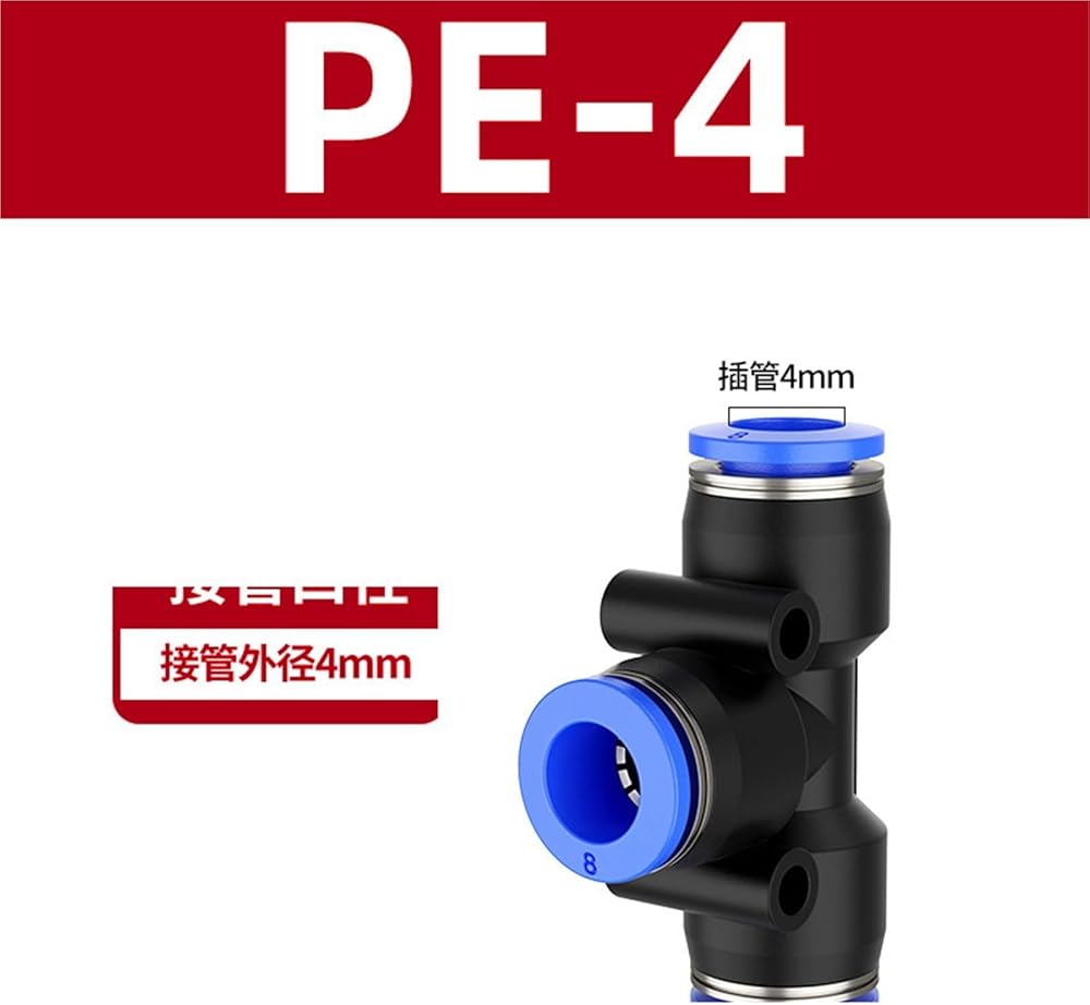 البلاستيك ثلاثي الاتجاه الأزرق PE هوائي مشترك T-شكل موصل سريع 4/6/8/10 مللي متر قطر متغير PEG8-6/10 1 قطعة (PE-4)