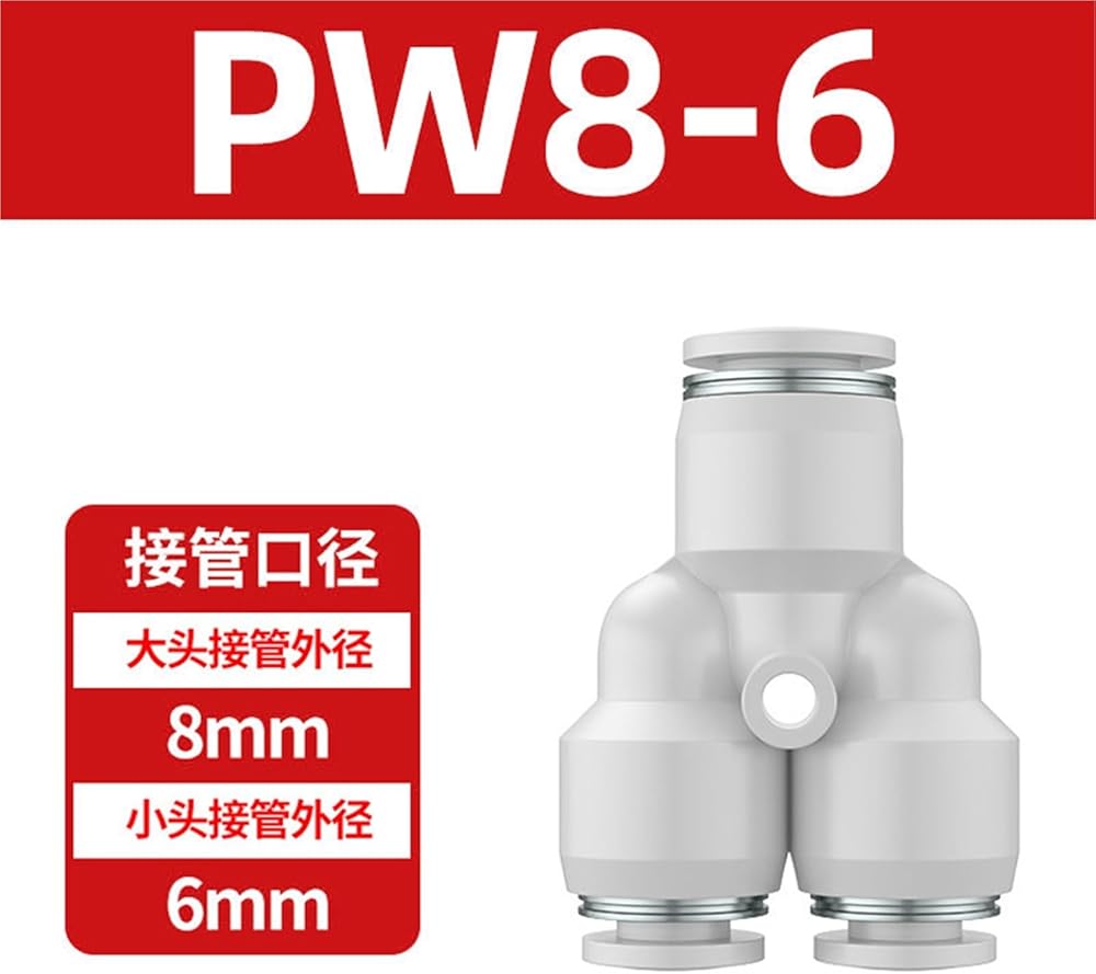 موصل سريع PY نوع تي شيرت 4/6/8 مقابس قطر متغير PW تحويل بلاستيكي 8-6/10-8 توصيل أنبوب هوائي 1 قطعة(白色PN8-6(高端))
