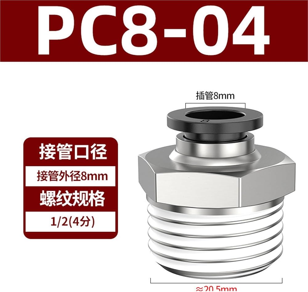 هوائي النحاس موصل سريع الموضوع مستقيم PC4-M5 8/10-02 القصبة الهوائية 6-01/12-04 أبيض وأسود 1 قطعة (黑色PC8-04)