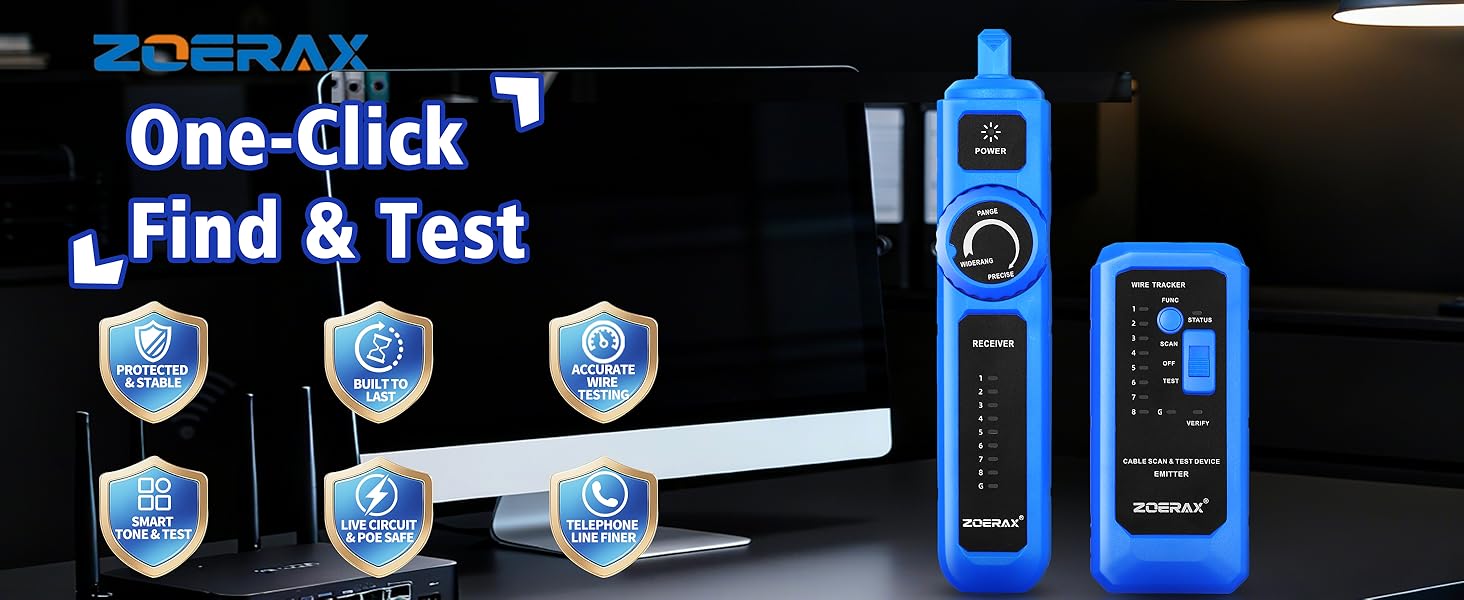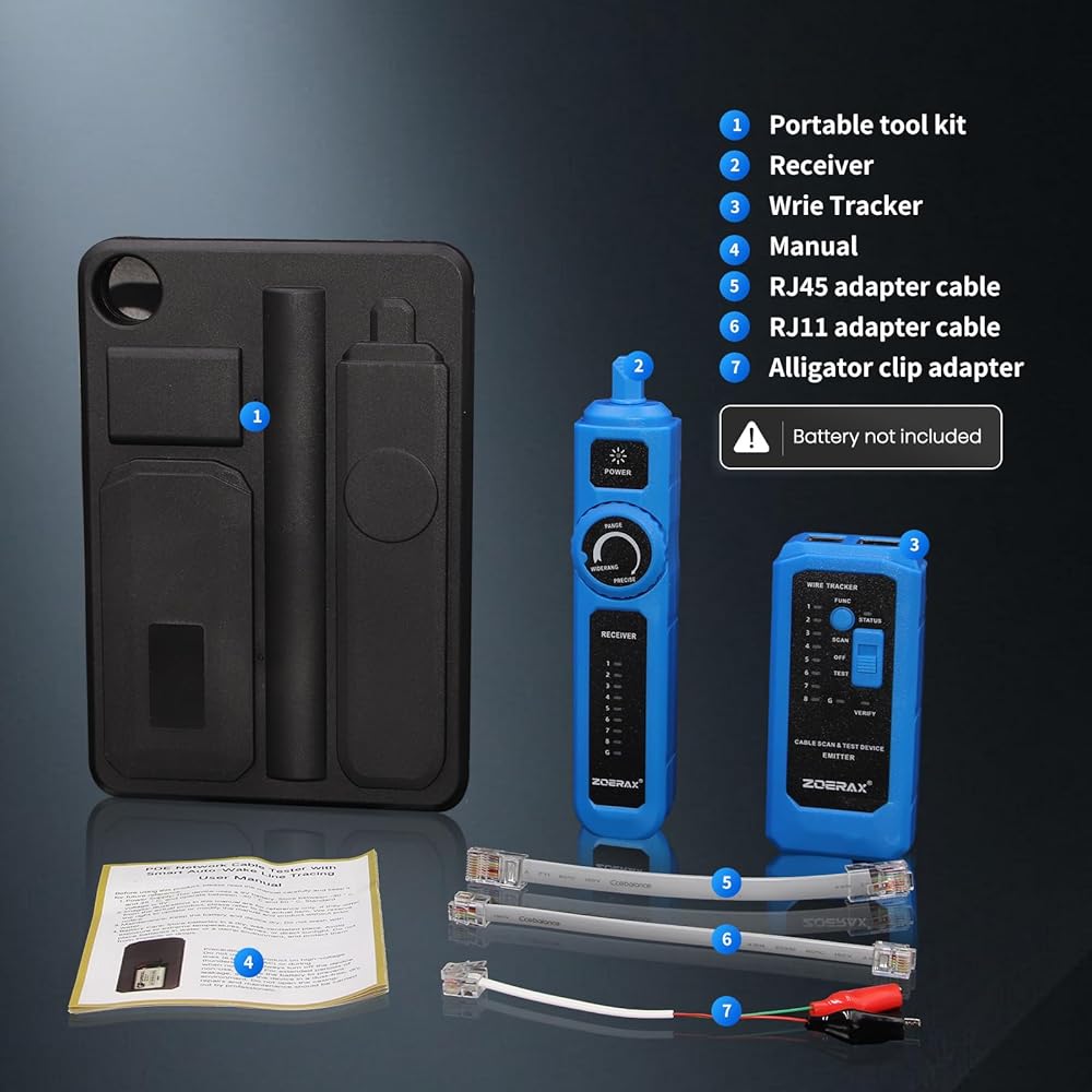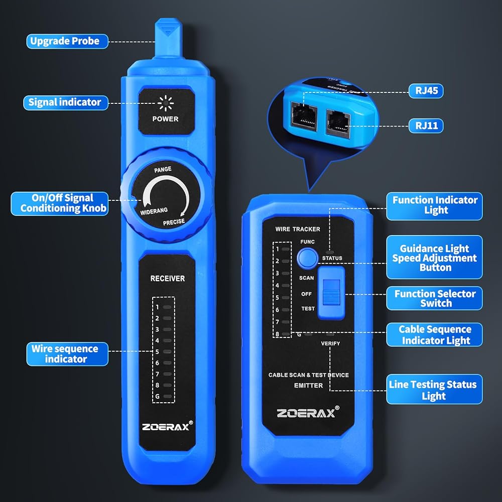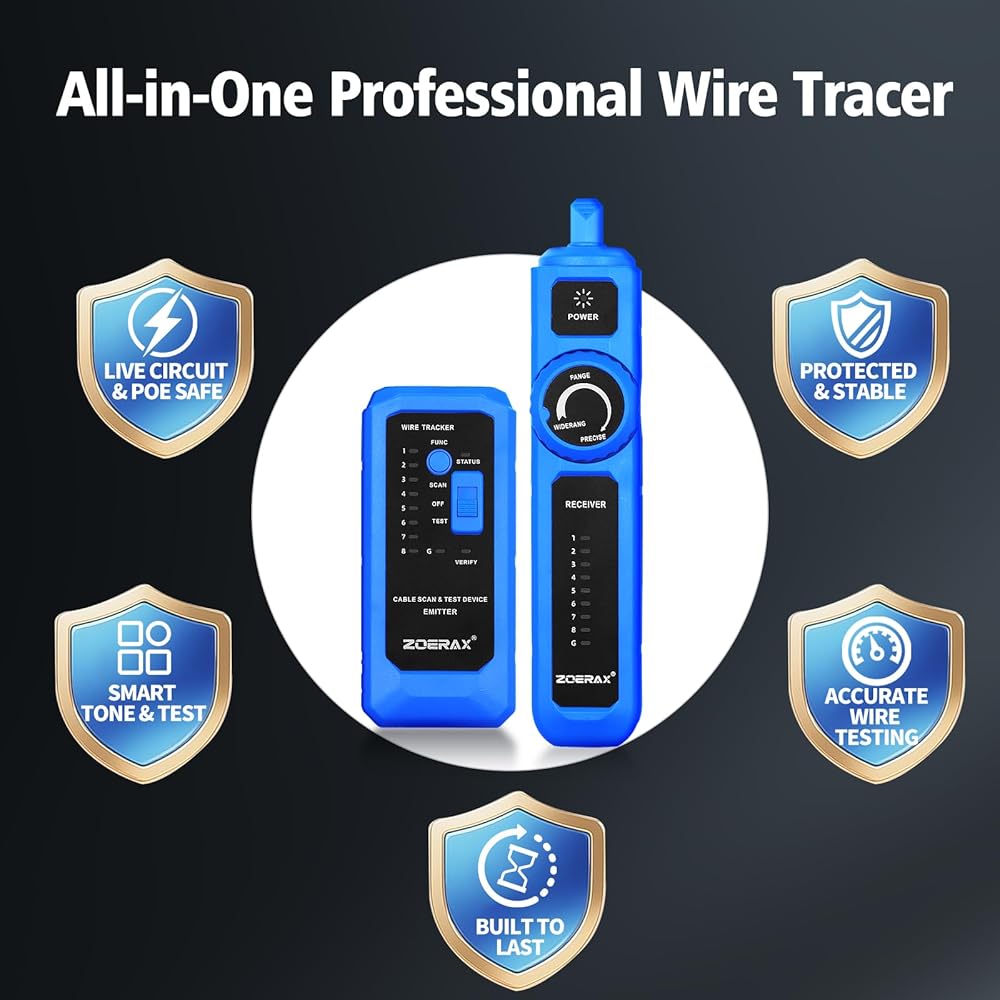 جهاز تتبع الأسلاك، جهاز اختبار كابل الشبكة مع وظيفة الاستيقاظ التلقائي - تحديد الموقع والاختبار والنغمة في خطوة واحدة آمنة لتتبع مفاتيح POE، مضاد للتداخل، للاستمرارية، خريطة الأسلاك، مفتوح/قصير، طويل الأمد