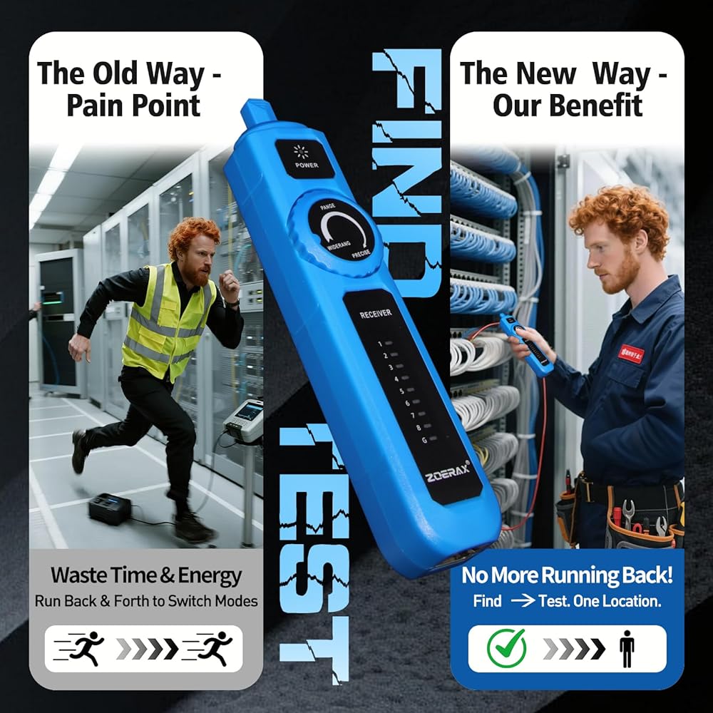 【تعريف الكابلات المعقدة】تحديد وتتبع الكابلات المحددة بسرعة بين الحزم في الجدران أو الأسقف أو لوحات التصحيح، مما يمنع التخمين والأخطاء.