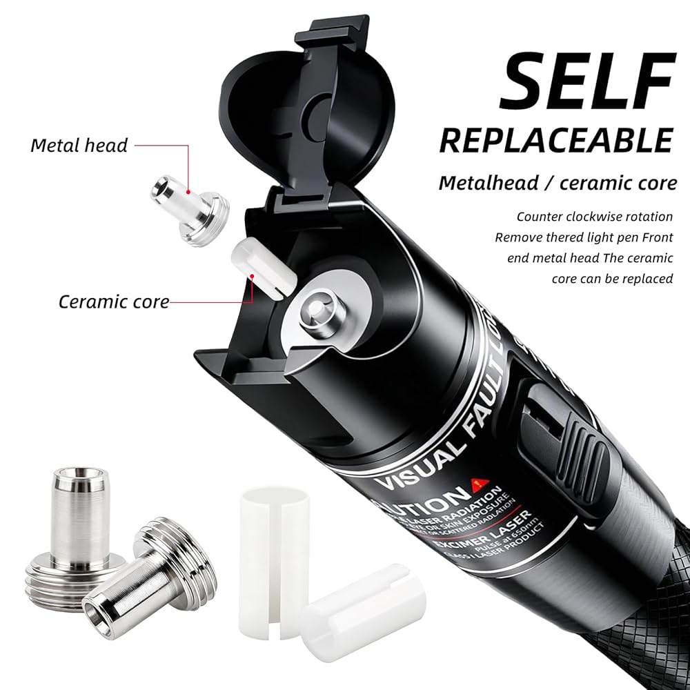 Wear Indicator Feature: If the visual fault locator shows no light transmission in an optical fiber, it indicates worn ceramic cores, prompting easy replacement to maintain accurate fault detection.