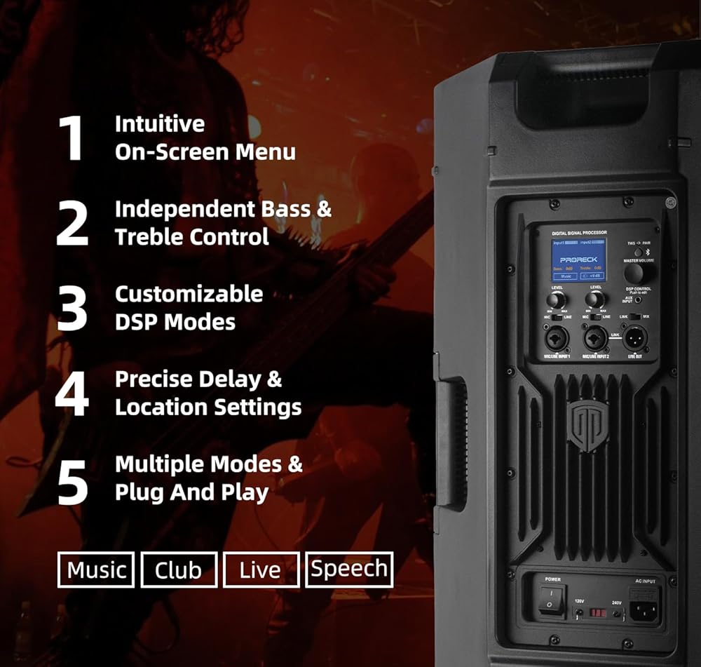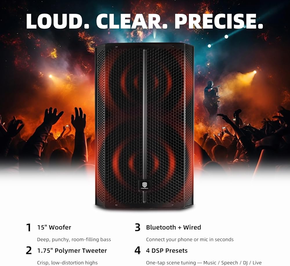 Powerful & Versatile for Any Event: Delivers 1500W peak power with four professional sound modes (Music/Club/Live/Speech), providing robust and clear audio perfect for DJ performances, live bands, speeches, and party entertainment.