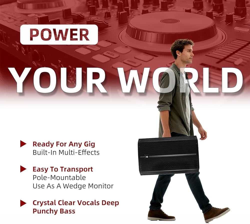 Durable, Portable & Road-Ready: Built with a rugged enclosure and ergonomic side handles for easy transport and setup. Its compact design (19.5''*17.5''*32.5'', weight:62.5Lbs.) is tailored for mobile DJs, event organizers, touring bands, and rental companies.