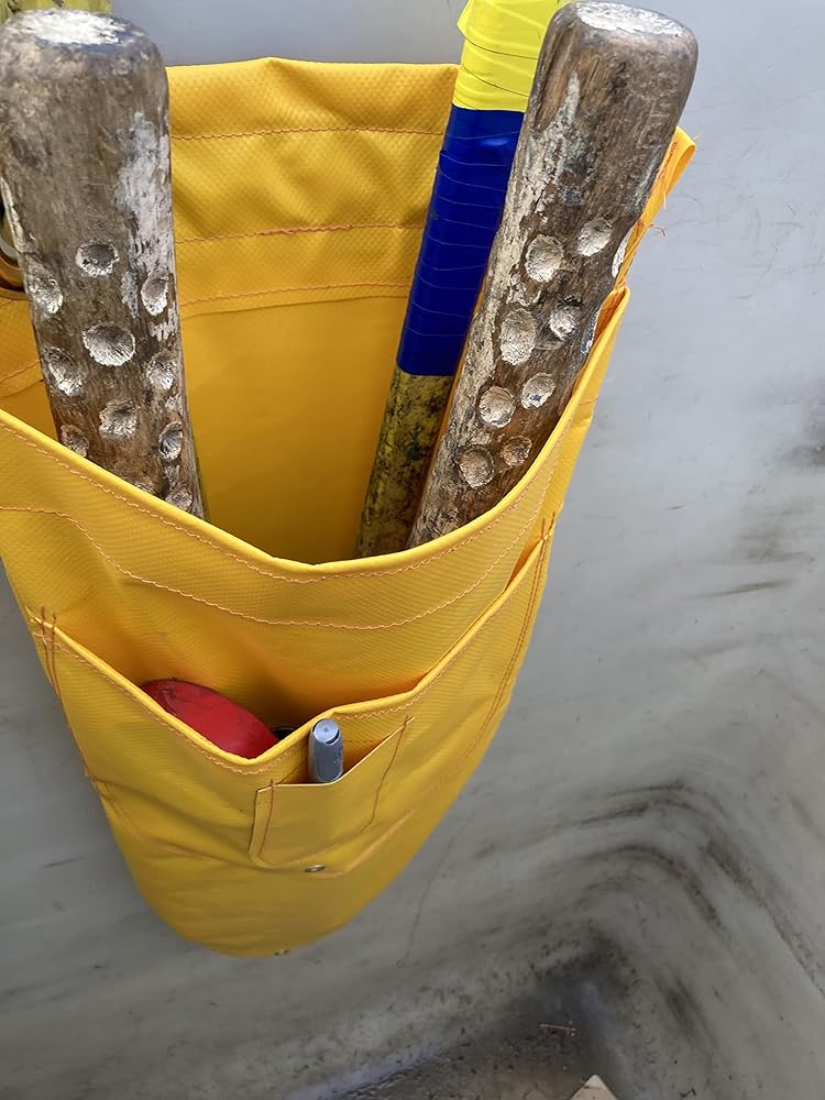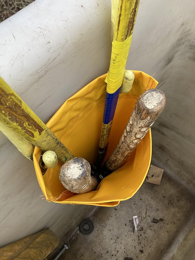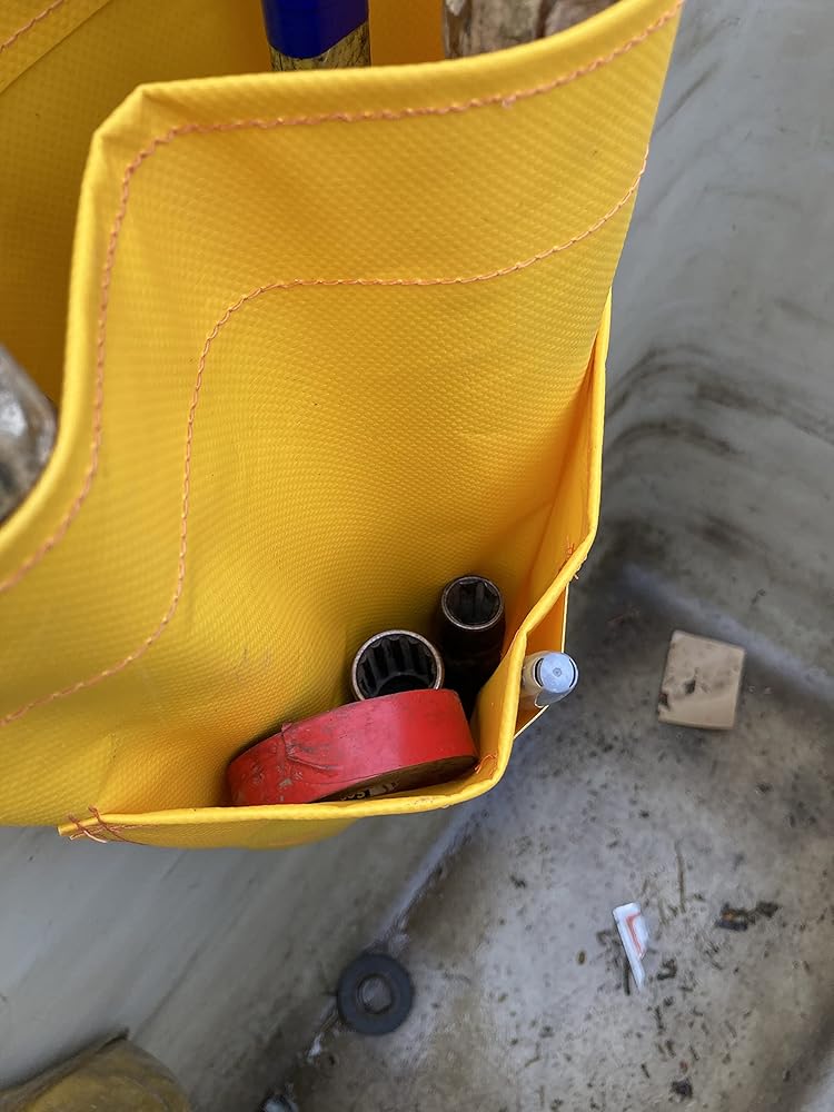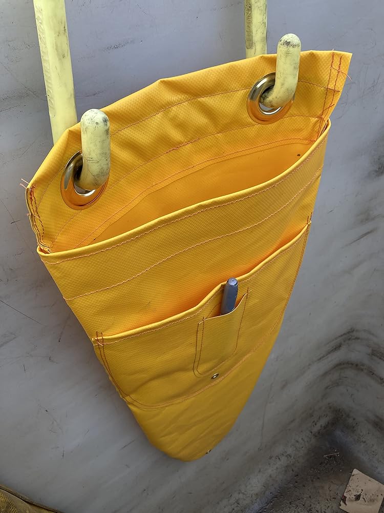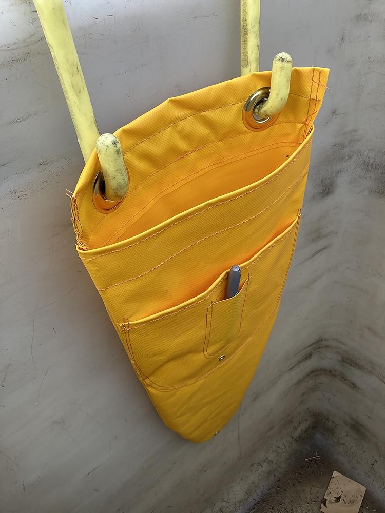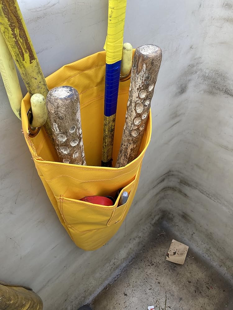 Tool Holder for compression tool, bolt cutters, ACSR cutters. This tool holder is constructed with reinforced vinyl, stitched with heavy duty nylon, drainage hole on pocket and bottom. Pocket for miscellaneous items. Small pen/sharpie marker holder. Grommet holes for top suspension. Width is 12 inches and length is 24 inches. Please click on Lineman Goods and Apparel on this page to see all our items.