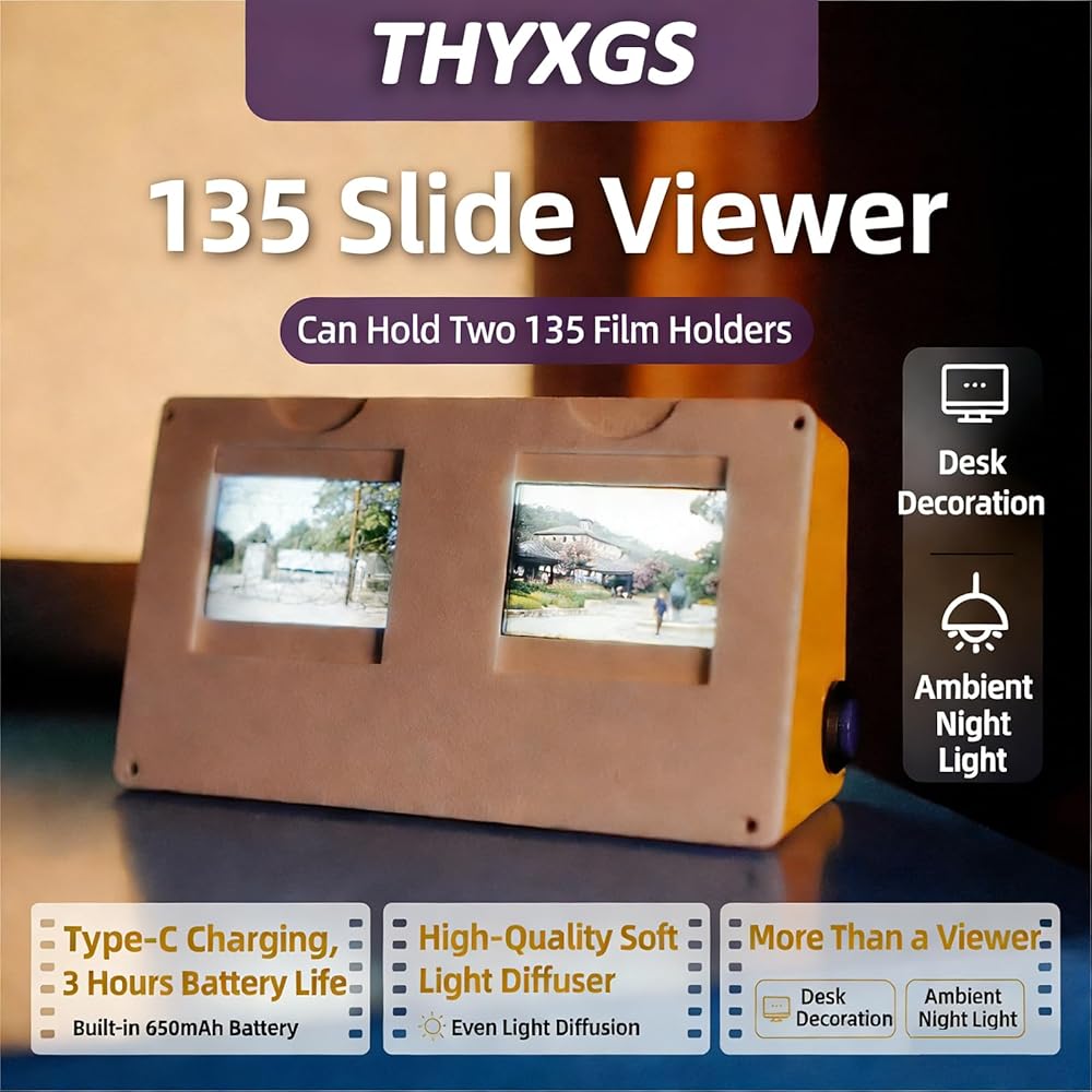 【Two 135 Film Clips】: More than just a device, it's a time machine. It magnifies and illuminates 5x5cm cardstock/plastic film clips, no more than 2mm thick, allowing you to travel back in time and relive precious memories.