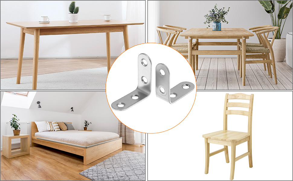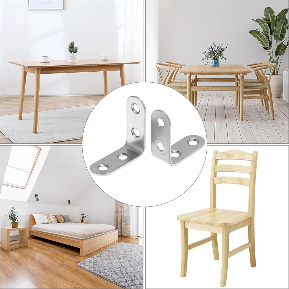 دعم معزز بمقدار 90 درجة: توفر مثبتات الزوايا على شكل حرف L ثباتًا هيكليًا عالي التحمل للأثاث المتذبذب. مصممة بزاوية قائمة دقيقة 90 درجة لتقوية المفاصل الخشبية بفعالية.