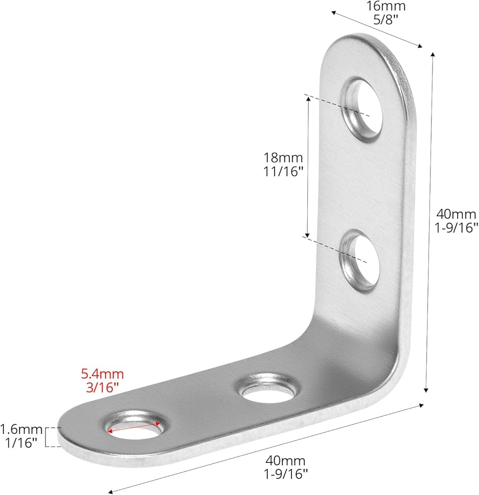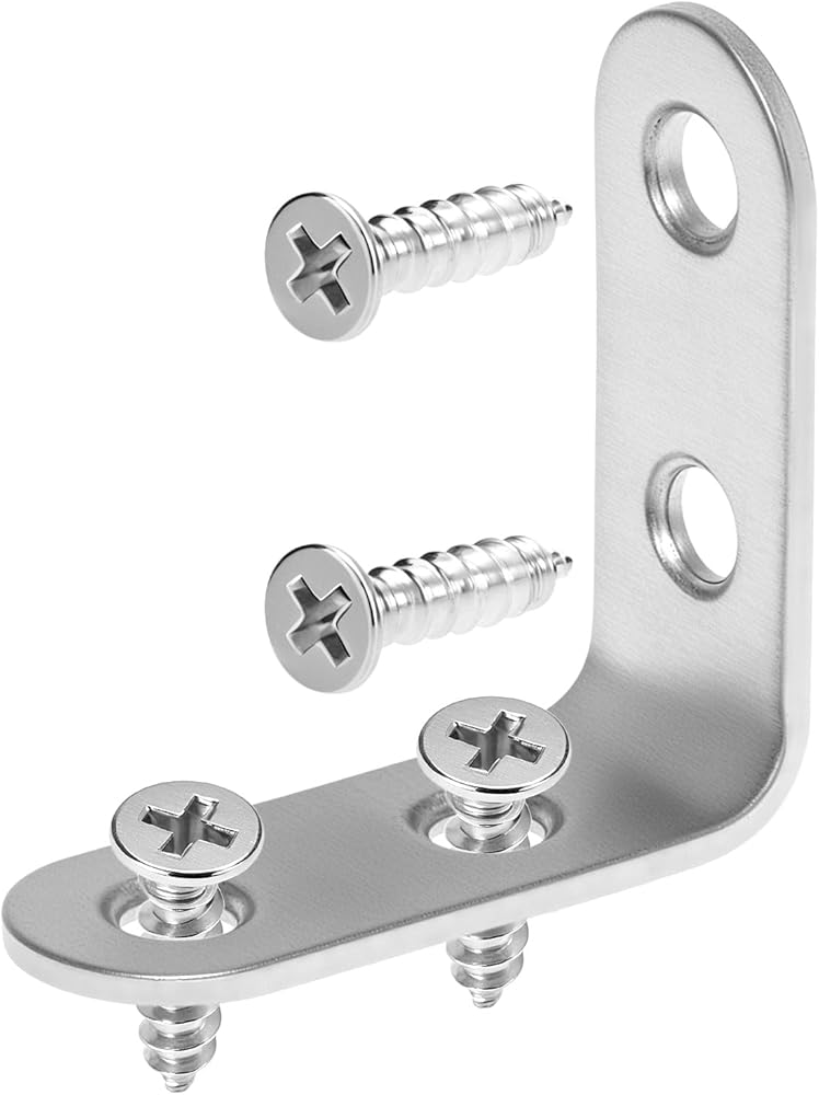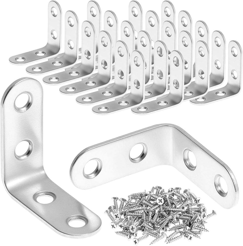 مجموعة أدوات كاملة: تتضمن العبوة 24 قطعة من دعامات الزوايا مقاس 1.57 بوصة و96 قطعة من براغي الرأس المسطحة. يرجى إزالة الطبقة الواقية على سطح الدعامة قبل الاستخدام للكشف عن اللمسة النهائية.