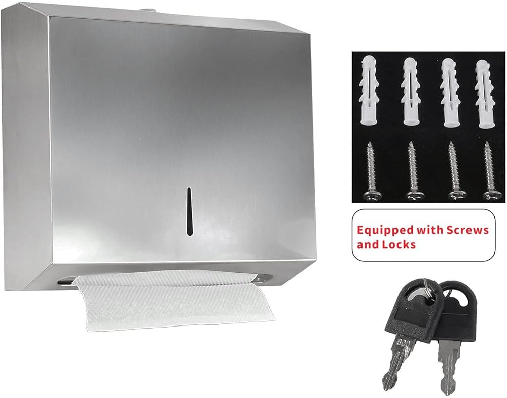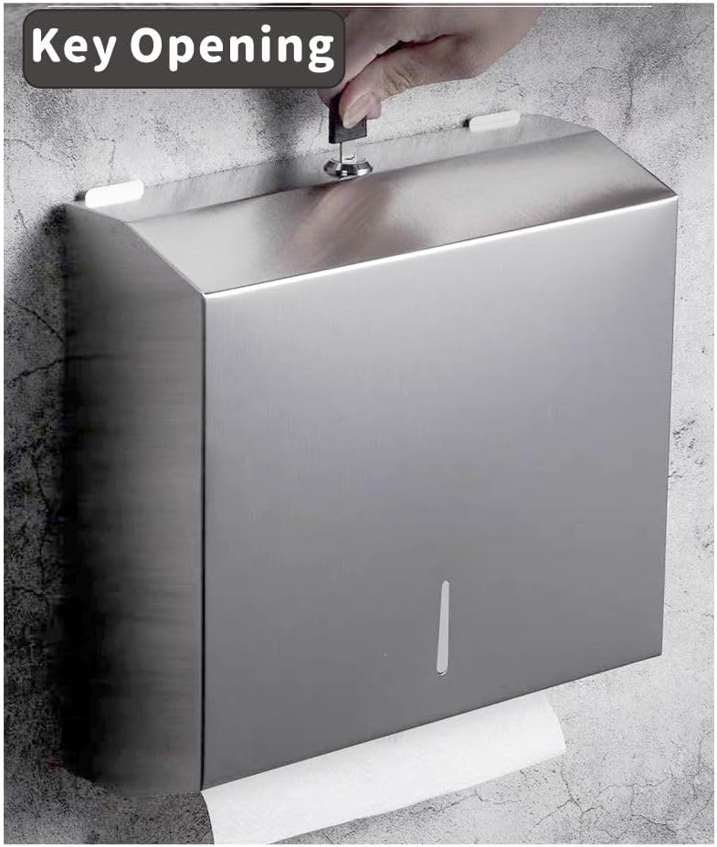 Yieach موزع المناشف الورقية بدون لمس على الحائط للحمام والفندق، حامل مناشف ورقية تجارية متعددة الطي من الفولاذ المقاوم للصدأ مع قفل لطي Z، مطوي، ثلاثي الطي، C، حامل مناشف اليد ثلاثي الطي