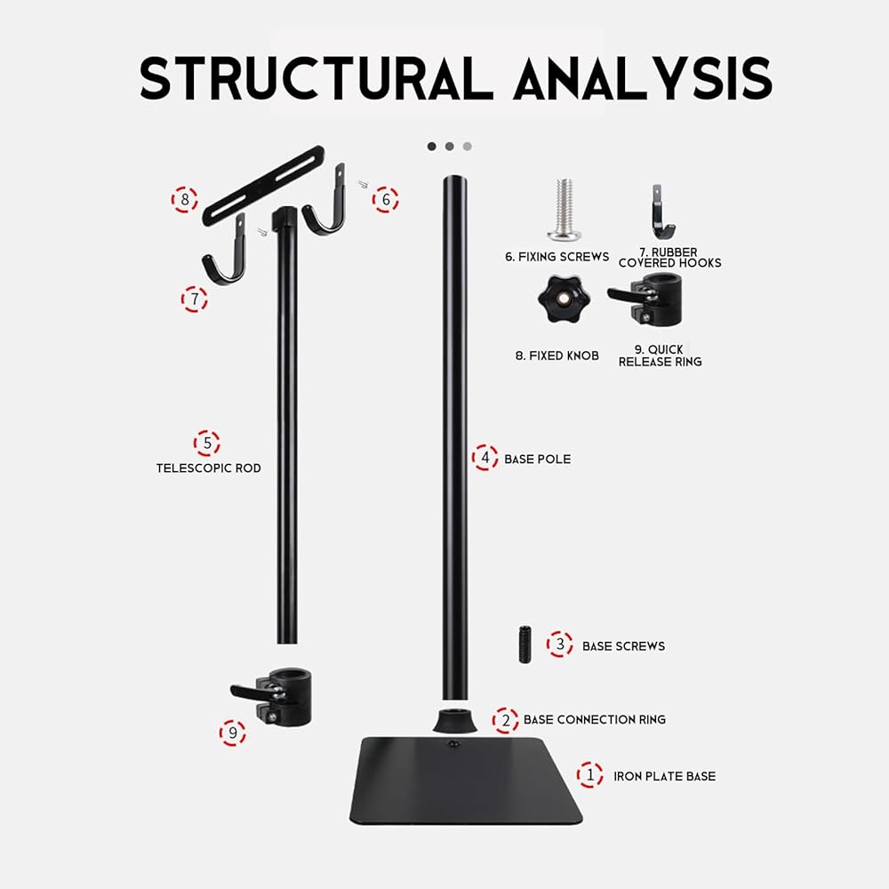 • ثبات فائق وبنية قوية: عمود دعم حديدي بسمك 38 مم وقاعدة واسعة غير قابلة للانزلاق تمنع الانقلاب. تضمن المواد عالية الجودة متانة طويلة الأمد لعرض الدراجة والصيانة الأساسية