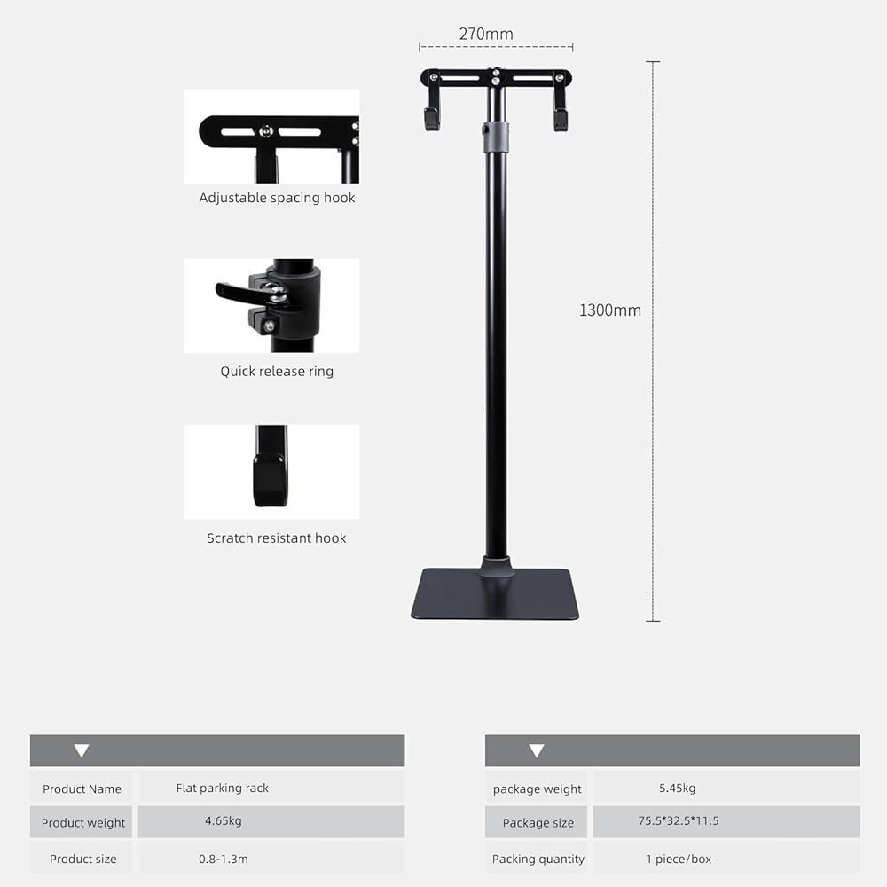 • ارتفاع 80-130 سم قابل للتعديل: اضبط الارتفاع بحرية من أجل الوقوف أو الجلوس المريح. يحافظ على الدراجة بعيدًا عن الأرض لتجنب اتساخ الإطار أثناء التنظيف والتشحيم