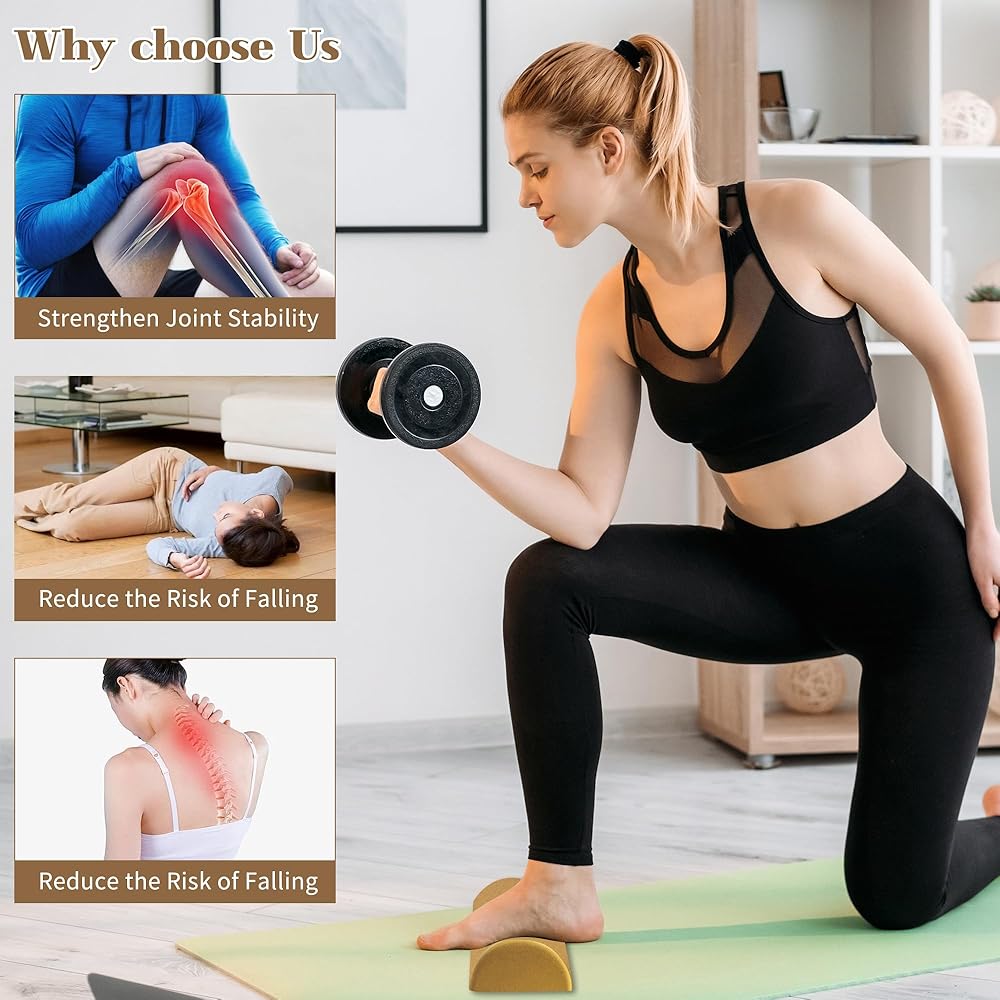 Upgraded Balance Trainer, Cork Balancing Board with User Guide-12In, Foot Ankle Strengthener Calf Stretcher, Plantar Fasciitis Bunion Arch Relief, Stability Trainer Double Leg Foot Strength Equipment