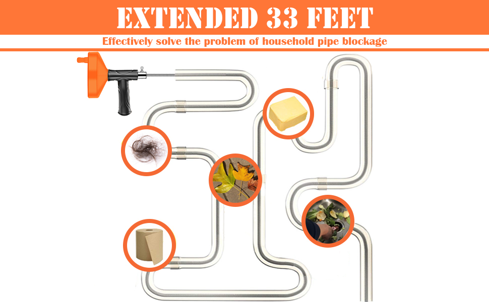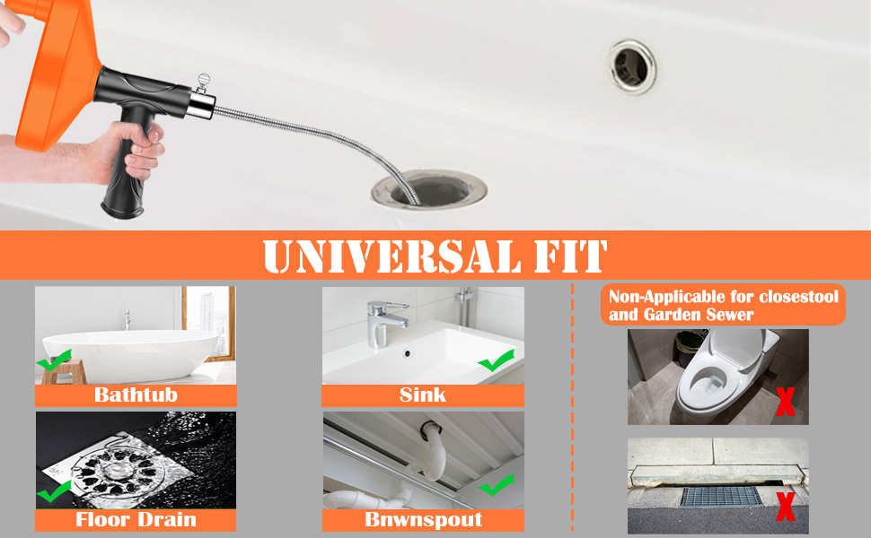 استخدام احترافي ومتعدد لإزالة معظم السدادات: يمكنك ضبط أطوال مختلفة بمرونة للتكيف مع أعماق مختلفة من أنابيب الصرف عن طريق تدوير المفتاح اللولبي وسحب الزنبركات ذهابًا وإيابًا. ومن ثم، يمكن استخدام استنزاف السباكة على نطاق واسع في أحواض المطبخ، وأحواض الاستحمام، ومصارف الحمام، والمجاري، ومصارف الأرضيات لحل معظم مشكلة الانسداد المنزلي.