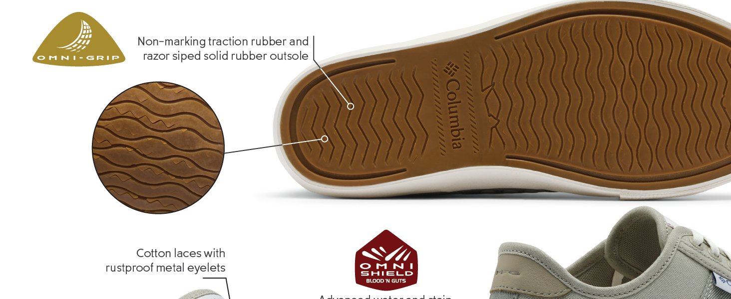 OMNI-SHIELD — BLOOD N GUTS: Go ahead, try and get dirty. Advanced water and stain guard—repels fluids and resists tough stains. Unlike most absorbent materials, this water repellent footwear is made with advanced stain-releasing tech that stays cleaner.