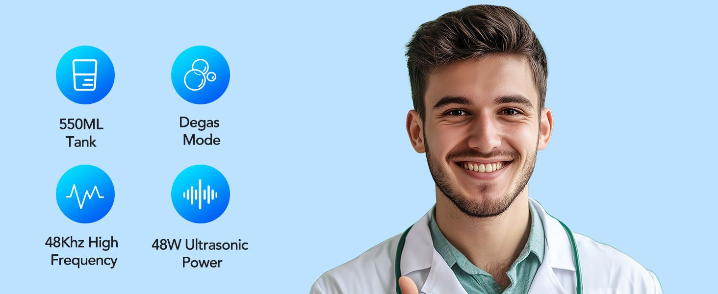 وظيفة إزالة الغاز لتحسين التنظيف: يعمل وضع إزالة الغاز على إزالة فقاعات الهواء من سائل التنظيف، مما يقلل الأكسدة ويعزز أداء التنظيف، مما يساعد على تنظيف العناصر القيمة بما في ذلك الحلقات بشكل أكثر فعالية.