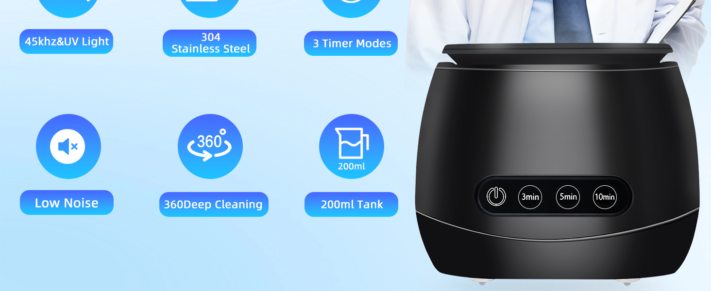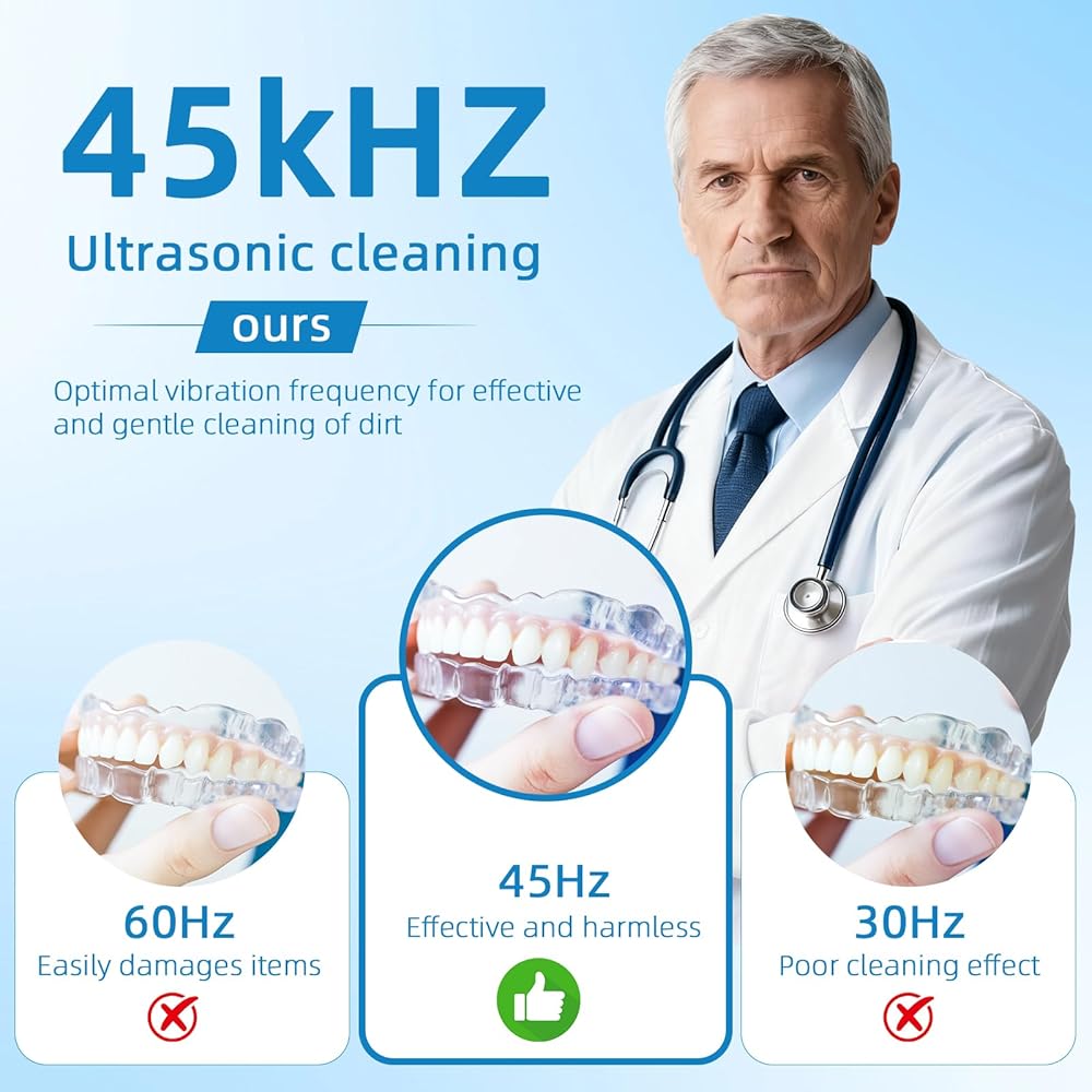 تجويف بالموجات فوق الصوتية قوي بتردد 45 كيلو هرتز للتنظيف العميق واللطيف - يؤدي استخدام الاهتزازات عالية التردد بتردد 45 كيلو هرتز إلى إنشاء فقاعات مجهرية تخترق أصغر الشقوق. يعمل هذا التجويف القوي والآمن على فك وإزالة الأوساخ والأوساخ والزيوت والبقايا بشكل فعال، مما يترك العناصر نظيفة تمامًا ولامعة وكأنها جديدة.