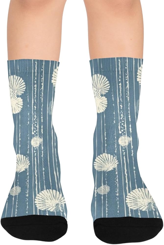 جوارب المشي لمسافات طويلة بطبعة صدفة نيلي - جوارب شتوية حرارية سميكة دافئة للأطفال الصغار للأولاد والبنات للمدرسة، والارتداء اليومي والأنشطة الخارجية