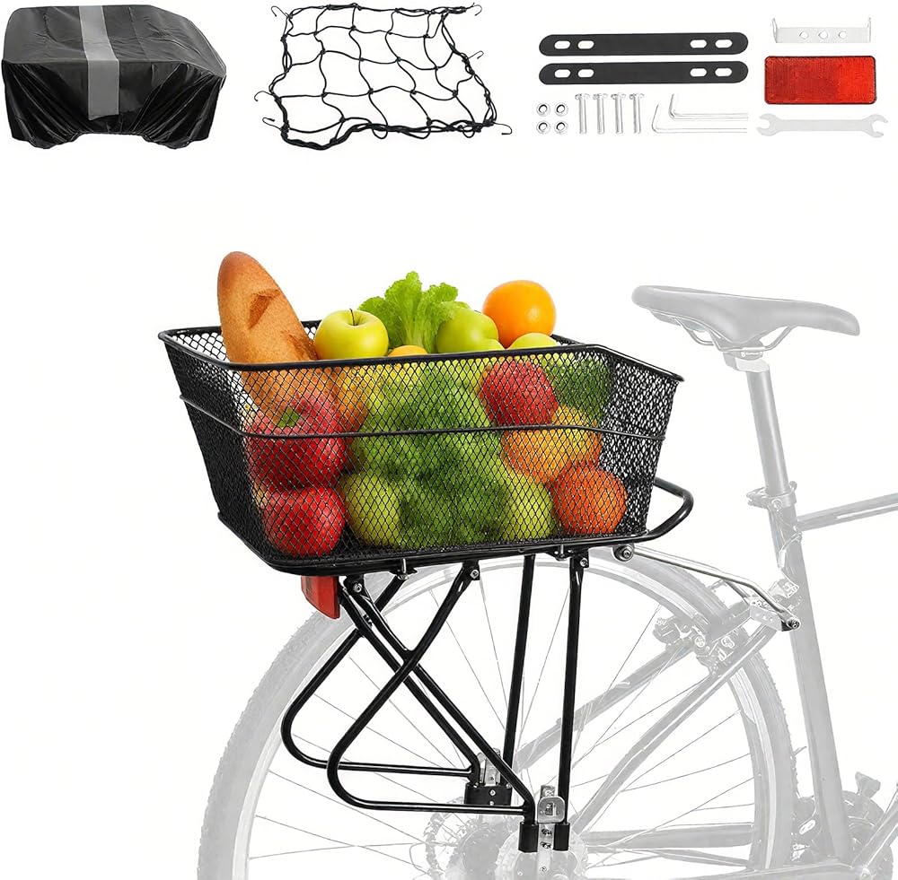 سلة الرف الخلفي للدراجة متعددة الأغراض: مثالية للتنقل في البقالة وركوب الدراجات في الهواء الطلق ونقل الحيوانات الأليفة، حيث تحول سلة الرف الخلفي للدراجة سعة 26 لتر دراجتك إلى ناقل شحن موثوق به للاستخدام اليومي المتنوع لركوب الدراجات