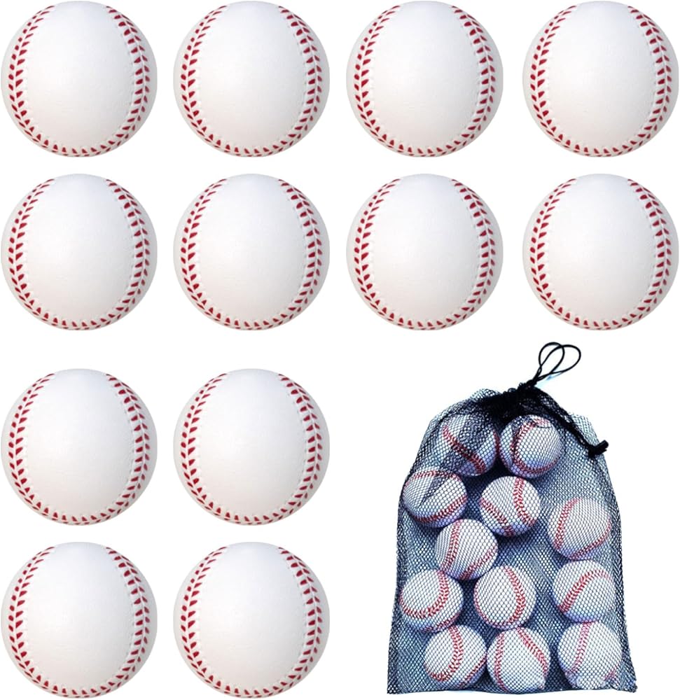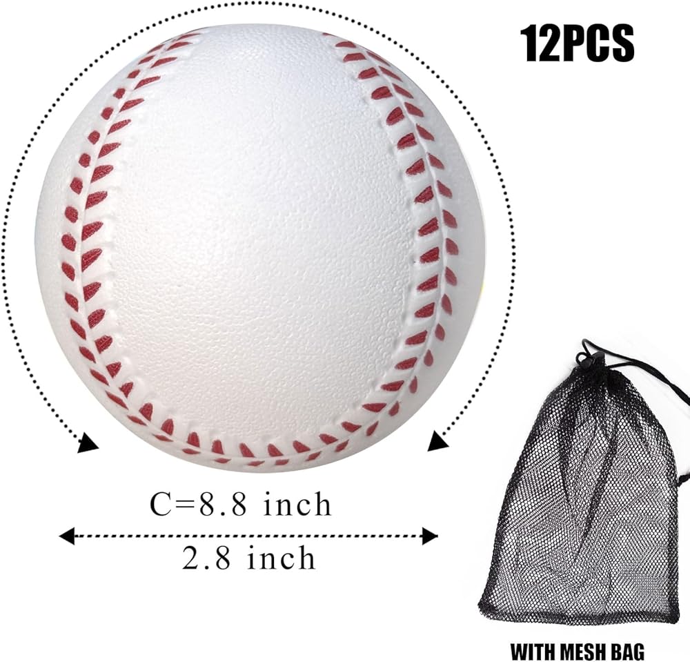 12 حزمة من كرات البيسبول الرغوية كرات البيسبول الناعمة مع حقيبة شبكية للاعبين المراهقين، تدريب الكرة الرياضية، كرة الضرب الآمنة، الضرب والميدان في الأماكن المغلقة والخارجية باللون الأبيض