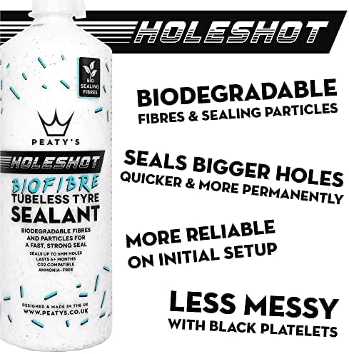 • الأفضل ببساطة - تم تطويره جنبًا إلى جنب مع ميكانيكا كأس العالم والمتسابقين أبطال العالم. إن مانع التسرب بدون أنابيب من Peaty's Holeshot مليء بالألياف القابلة للتحلل وجزيئات الختم لإعطاء ختم سريع وقوي