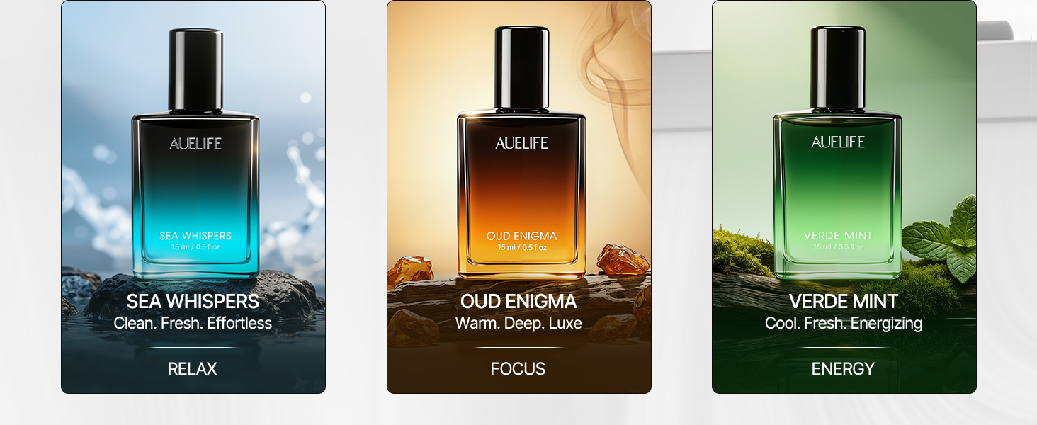 تجربة رائحة منسقة - اكتشف ثلاثة ملفات عطرية مميزة في مجموعة واحدة. يقدم Verde Mint دفعة منعشة ورائعة، بينما يوفر Oud Enigma حضورًا خشبيًا عميقًا، ويخلق Sea Whispers جوًا نظيفًا وهادئًا للاسترخاء والتوازن.