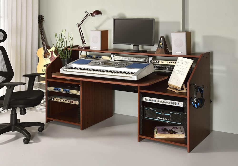 Enhance your music studio with this versatile rectangular music desk, available in sophisticated black or warm cherry finishes to suit your style.