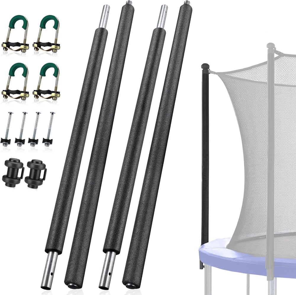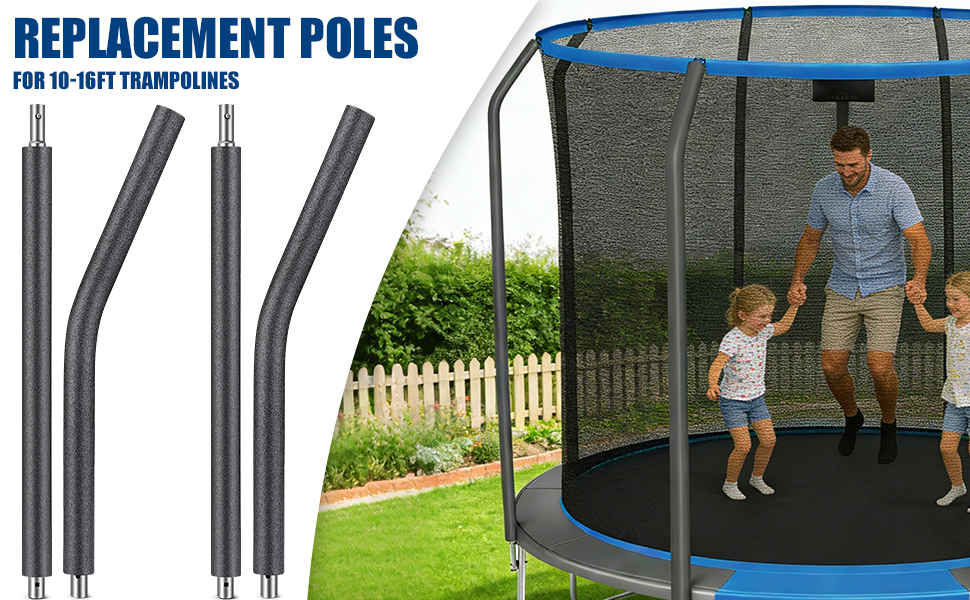 【مصممة من أجل السلامة: تصميم واقٍ منحني】-- على عكس الأعمدة المستقيمة، تم تشكيل هذه الأعمدة المنحنية لتتبع خط شبكة الأمان الطبيعية، بهدف خلق مساحة قفز أكثر أمانًا. متوافق مع الأعمدة الأصلية التي يبلغ قطرها الداخلي 1.65 بوصة (4.2 سم) أو أقل