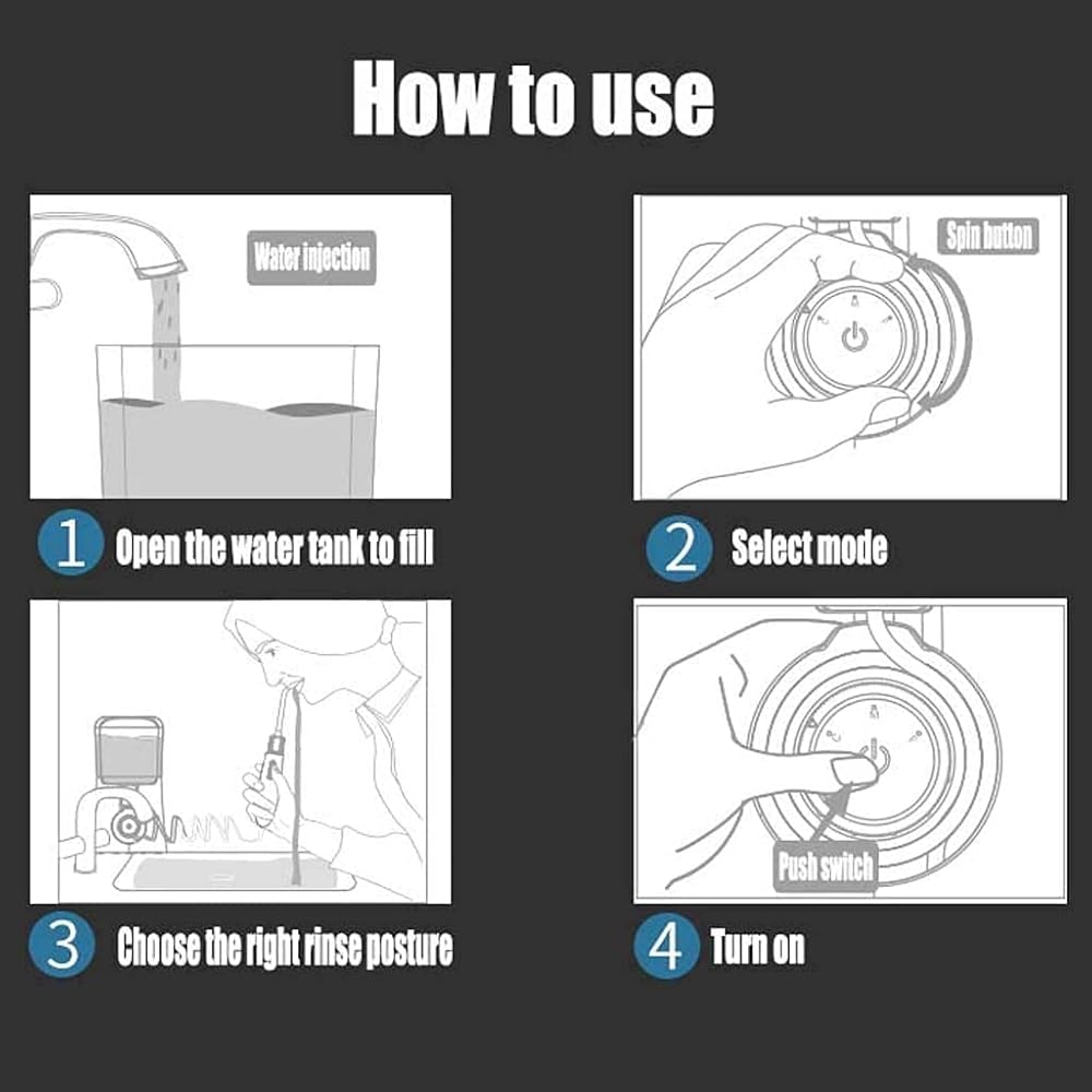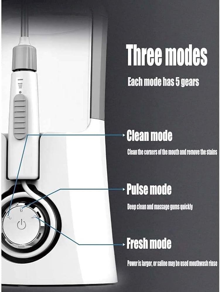 Water Flosser Dental Oral IrrigatorImprove oral odor | Improve gum bleeding | Improve worm tooth painDental braces wearing cleaning | dental implant cleaning | denture cleaningPeople who are prone to stuff teeth | Prevent tooth decay6 advantages3 modes | 5 gears | Metal water pump600ml water tank | 360 ° arbitrary rotation | 3min intelligent timingParameterAdapter voltage: 12VWater column pressure: 30-110PSIRed teeth mode: Clean mode | Pulse mode | Fresh modeWater tank volume: 600mlNozzles: 6Product use: Effectively clean the food residues, tooth stains, tartar and plaque on the tooth surface, gingival groove and deep between the teethFAQ:Do I need to brush my teeth after using the dental floss?The toothbrush cleans the surface of the teeth, and the flossing device is the hidden part of cleaning the teeth.order detailsWater Flosser * 1Nozzle * 6Adapter * 1Thank you very much for your trust and support, and I wish you a happy life.