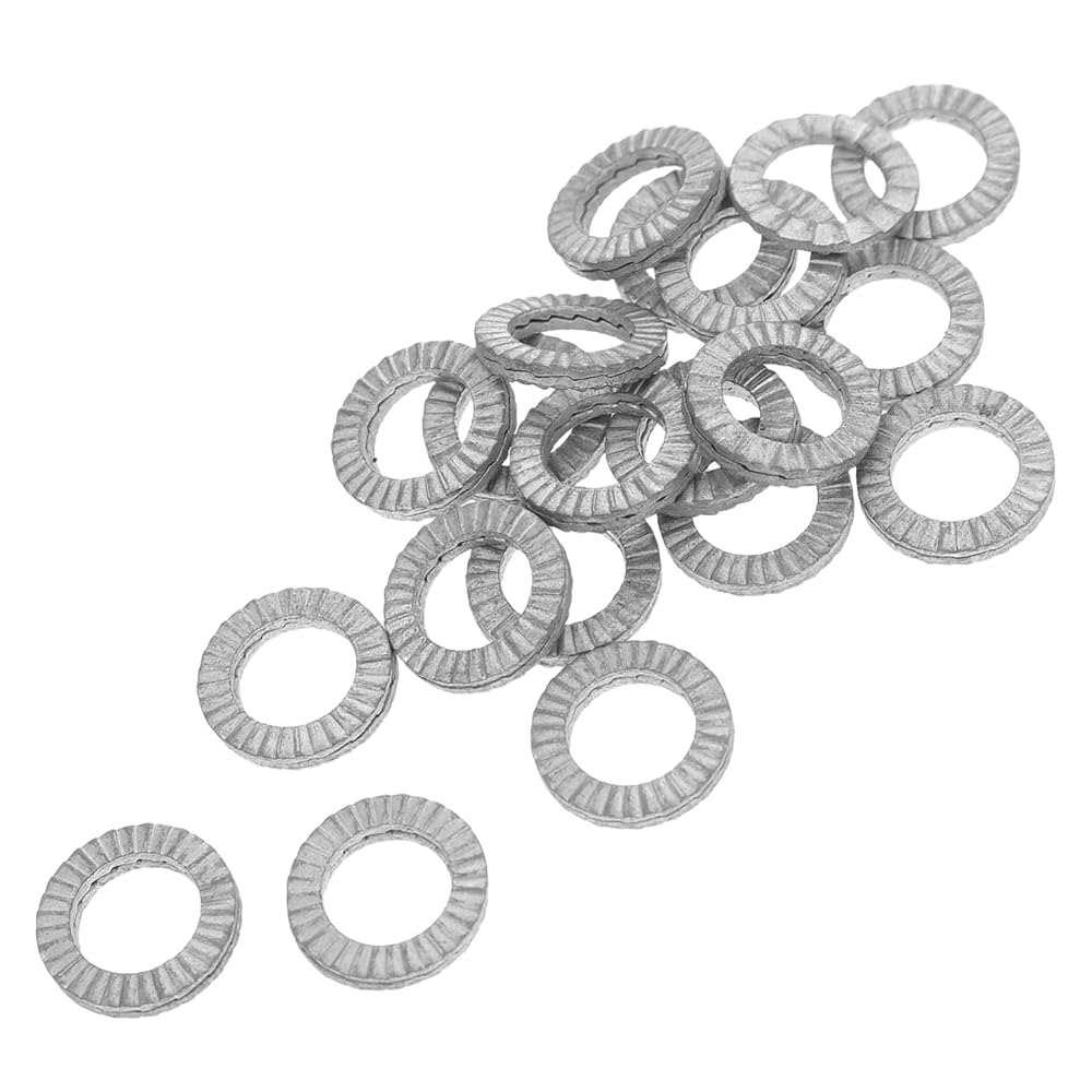The manganese steel anti-vibration safety washers for requiring high vibration resistance. These double-stacked self-locking wedge washers are designed to keep bolts and screws securely fastened, preventing loosening over time. Ideal for use in bicycles and industrial machinery, install the washers between the bolt and the surface to achieve a stable and secure connection.