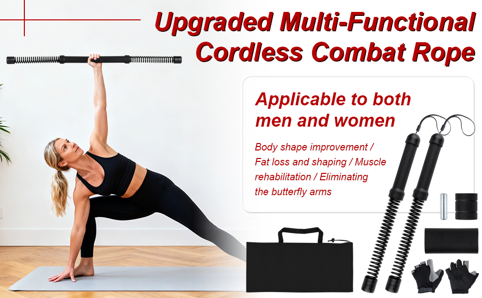 حبال معركة متعددة الوظائف بدون حبال، متعددة الاستخدامات للتدريب المتقطع عالي الكثافة (HIIT)، والتمارين الهوائية، وبناء عضلات الجسم بالكامل - تستهدف الكتفين والظهر والقلب والذراعين والساقين دون عناء. تصميم لاسلكي مبتكر يكسر حدود الحركة، مما يسمح لك بالتدريب بحرية دون أن تكون مقيدًا. احرق السعرات الحرارية بسرعة، وابني عضلات خالية من الدهون، واستمتع بنفس تأثير التدريب الاحترافي الذي تتمتع به صالة الألعاب الرياضية في منزلك